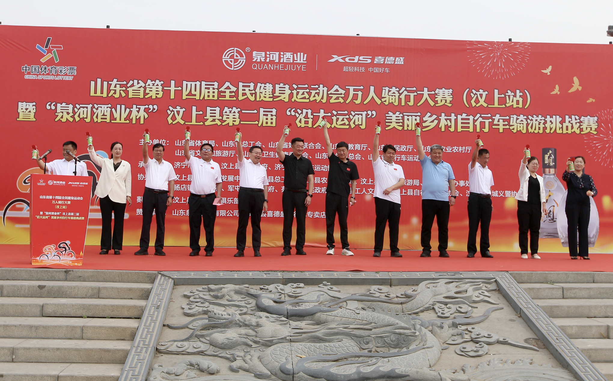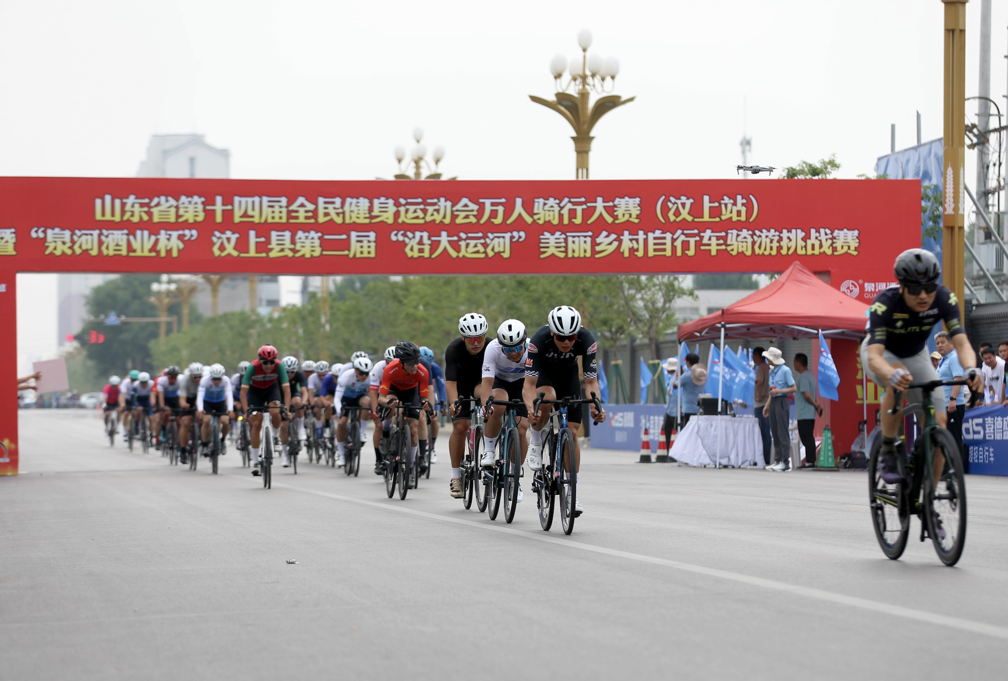 5月25日上午,山东省第十四届全民健身运动会万人骑行大赛(汶上站)暨“泉河酒业杯”汶上县第二届“沿大运河”美丽乡村自行车骑游挑战赛,在济宁市汶上县宝相寺景区莲花广场鸣笛开赛。来自山东、海南、江苏、山西、河南、河北等8个省份的63支自行车车队、700余名选手齐聚一堂,共同见证了这场体育与文化、旅游与乡村振兴深度融合的盛会。