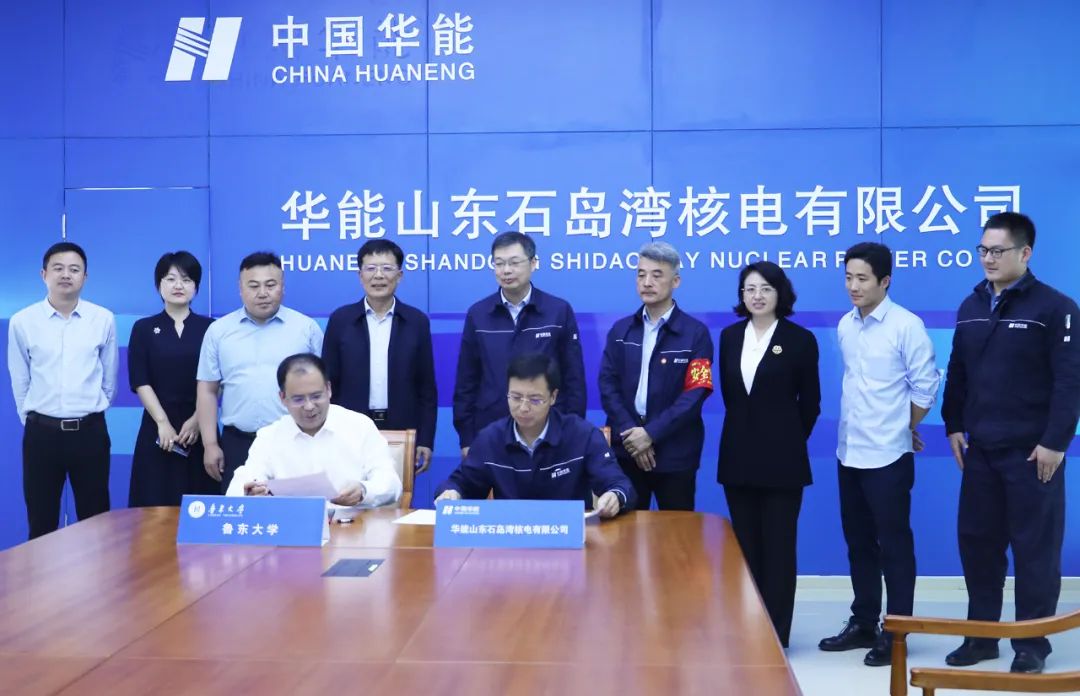 鲁东大学与华能山东石岛湾核电有限公司共建滨海核电冷源安全山东省未来产业实验室签约仪式在华能石岛湾核电举行。鲁东大学党委书记王庆教授,党委常委、副校长陈厚教授,华能石岛湾核电党委书记、总经理张延旭,党委委员、副总经理张爱军出席活动。