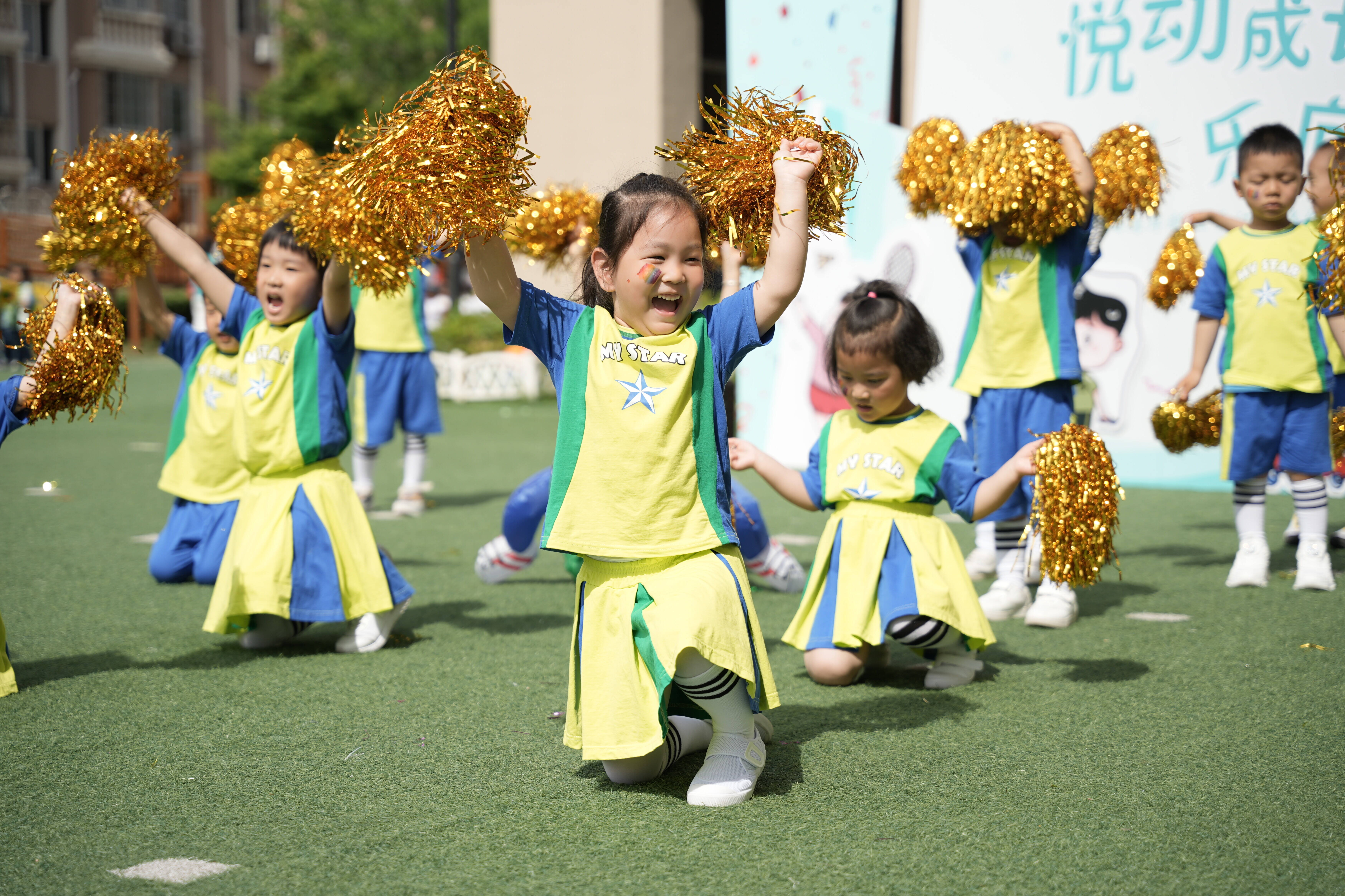 各班级方队入场,孩子们步伐矫健、精神饱满,喊着响亮的口号,展示着各自的风采。