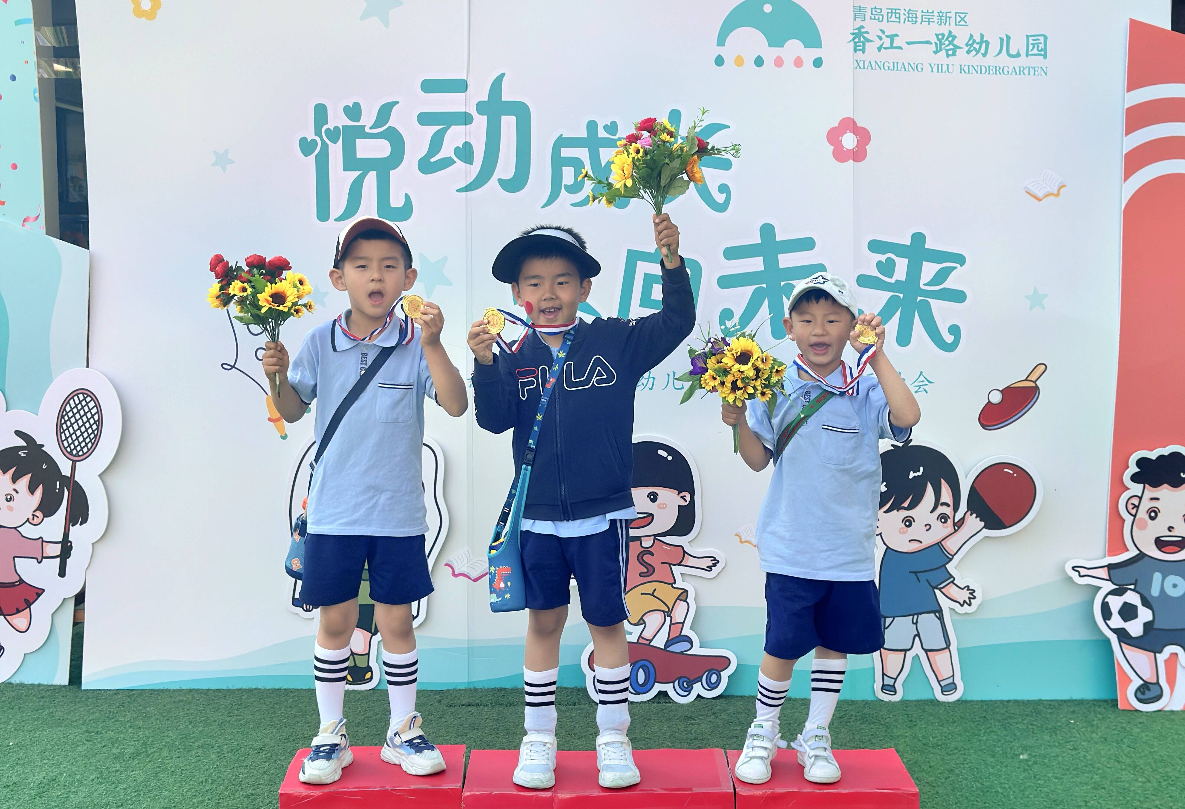 经过一上午紧张而又快乐的赛事,运动会圆满结束!“小小健儿们”表现出色,赛出了友谊,赛出了成绩。最后,于永华为孩子们颁发了奖牌。