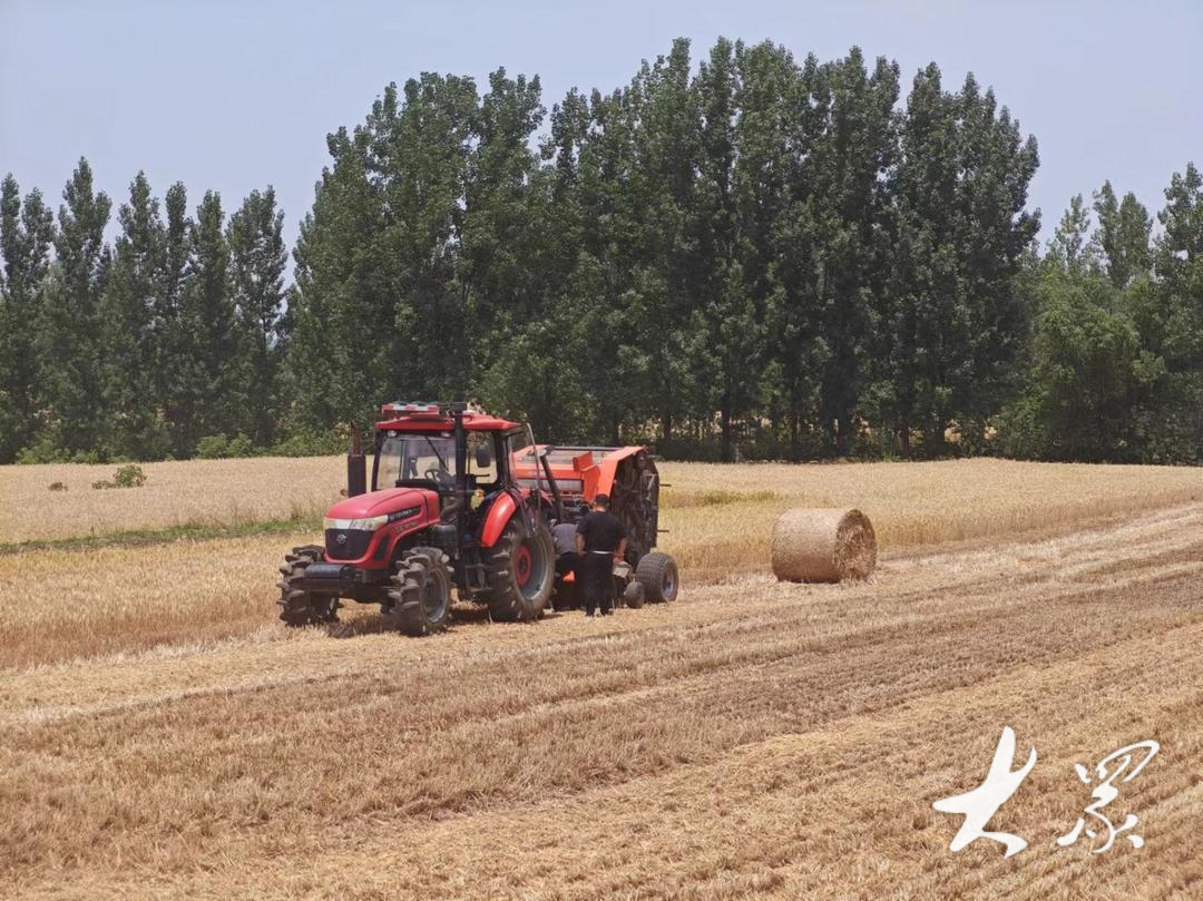 “现在除了零碎的地块,农户只要是麦收基本都会找我们,收割机来操作一亩地成本才50块钱。而且我们还有搂草机和打包机,要是哪家种地的不想留着秸秆,我们就免费帮他们把地里秸秆打包处理掉,整个过程下来根本不需要他们操心。” 肖丙虎说。