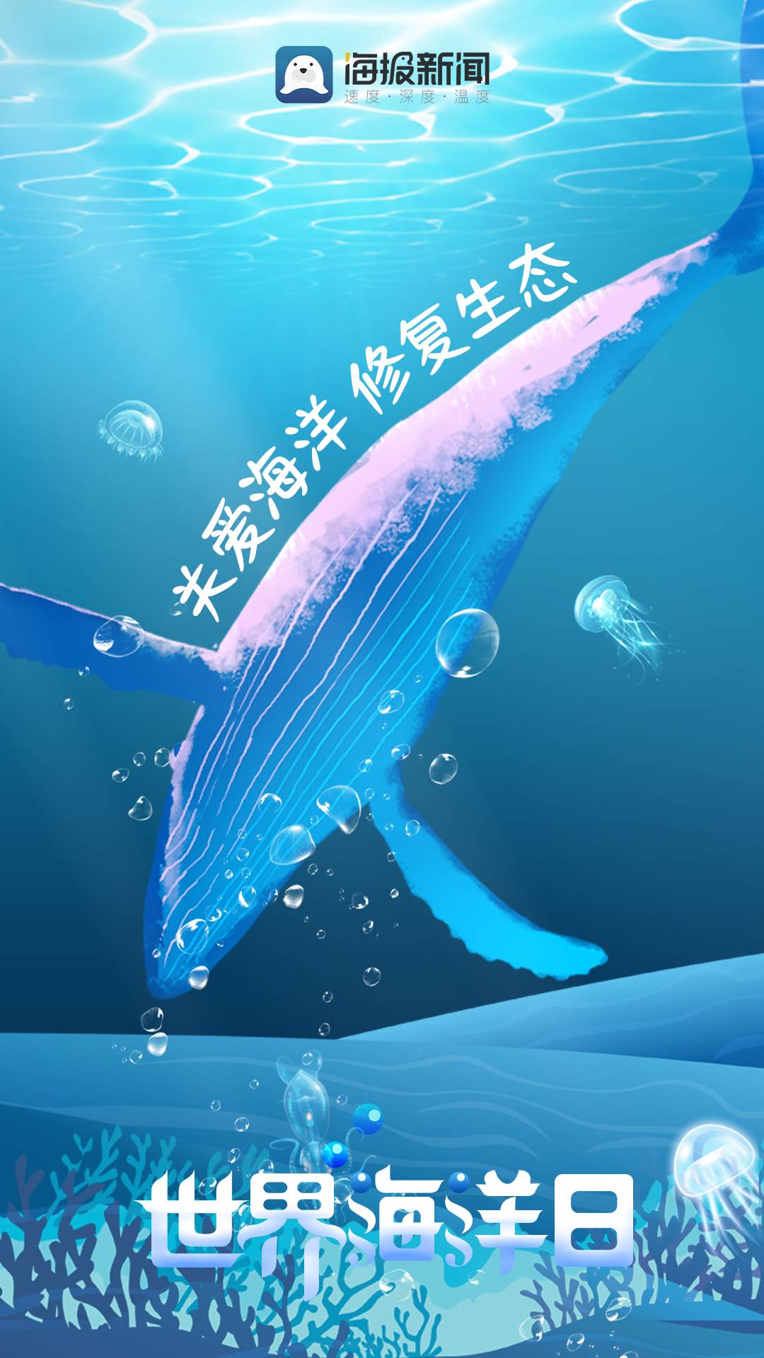 海洋,地球上最广阔的蓝色奇迹,孕育着无数生命,维系着生态平衡。2024年6月8日是第16个世界海洋日和第17个全国海洋宣传日,活动主题是“保护海洋生态系统 人与自然和谐共生”。让我们守护海洋物种,传承海洋文明。