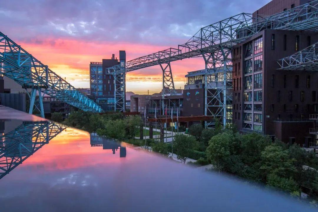 北京首钢园,背倚永定河绿色生态走廊,与长安街西延长线交会,是中国近代民族工业的缩影。