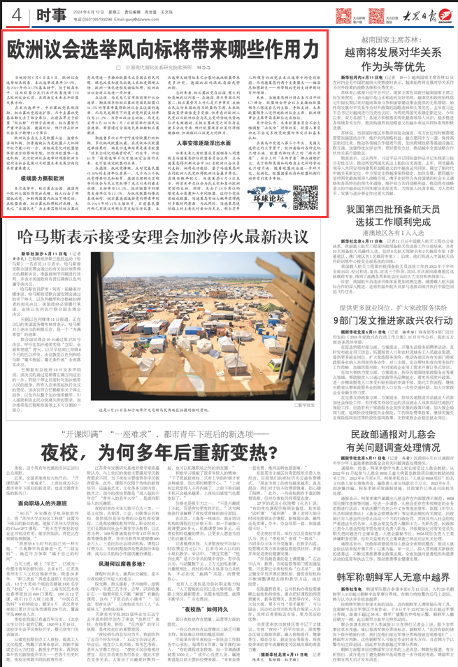本次选举中,极右翼在法国、德国两个欧洲大国取得突出成绩,极大打击了两国执政党,加剧两国国内政治不确定性。在欧盟层面,极右翼也取得较好成绩,未来以“本国优先”为主要思想的极右翼政党或将进一步推动欧盟及成员国在移民问题、绿色政策和援乌抗俄上采取更强硬立场,欧洲一体化进程或面临阻碍,欧洲政治社会对立或进一步加重。