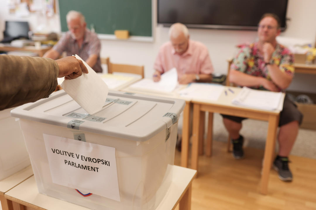 6月9日,选民在斯洛文尼亚卢布尔雅那参加欧洲议会选举投票。