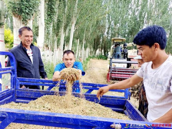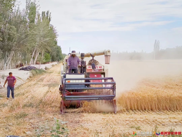 在城关乡帕万艾日克村小麦连片种植区,收割机来回穿梭,金黄麦粒如数归仓。今年帕万艾日克村共种植小麦1600余亩,目前已收割140亩。
