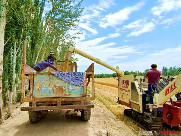 萨罕镇硝乎鲁克村千亩小麦进入收获期,麦农们抢抓晴好天气,一台台联合收割机在麦田里来回穿梭,割麦、脱粒一气呵成。为确保小麦按时收割归仓,济宁援疆干部积极协调联系收割机、打包机,通过田间指挥收割,把村里空旷场地作为临时晾晒场地,全力做好抢收抢晒工作,为群众做好精准服务。(通讯员 汪清)