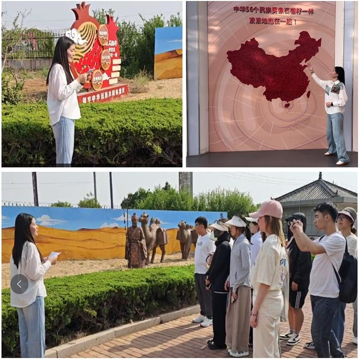 中华民族共同体实践基地位于枣庄市峄城区中华石榴文化博览园内,马克思主义学院思政课教师刘梦充分利用石榴文化特色和资源,以“石榴花开映枣庄,同心共筑中国梦”为主题,从“同文、同向、同行、同心”四重维度为学生们上了一堂关于铸牢中华民族共同体意识 “行走”的思政课实践教学,在青年学生心中种下“中华民族一家亲”的希望种子。