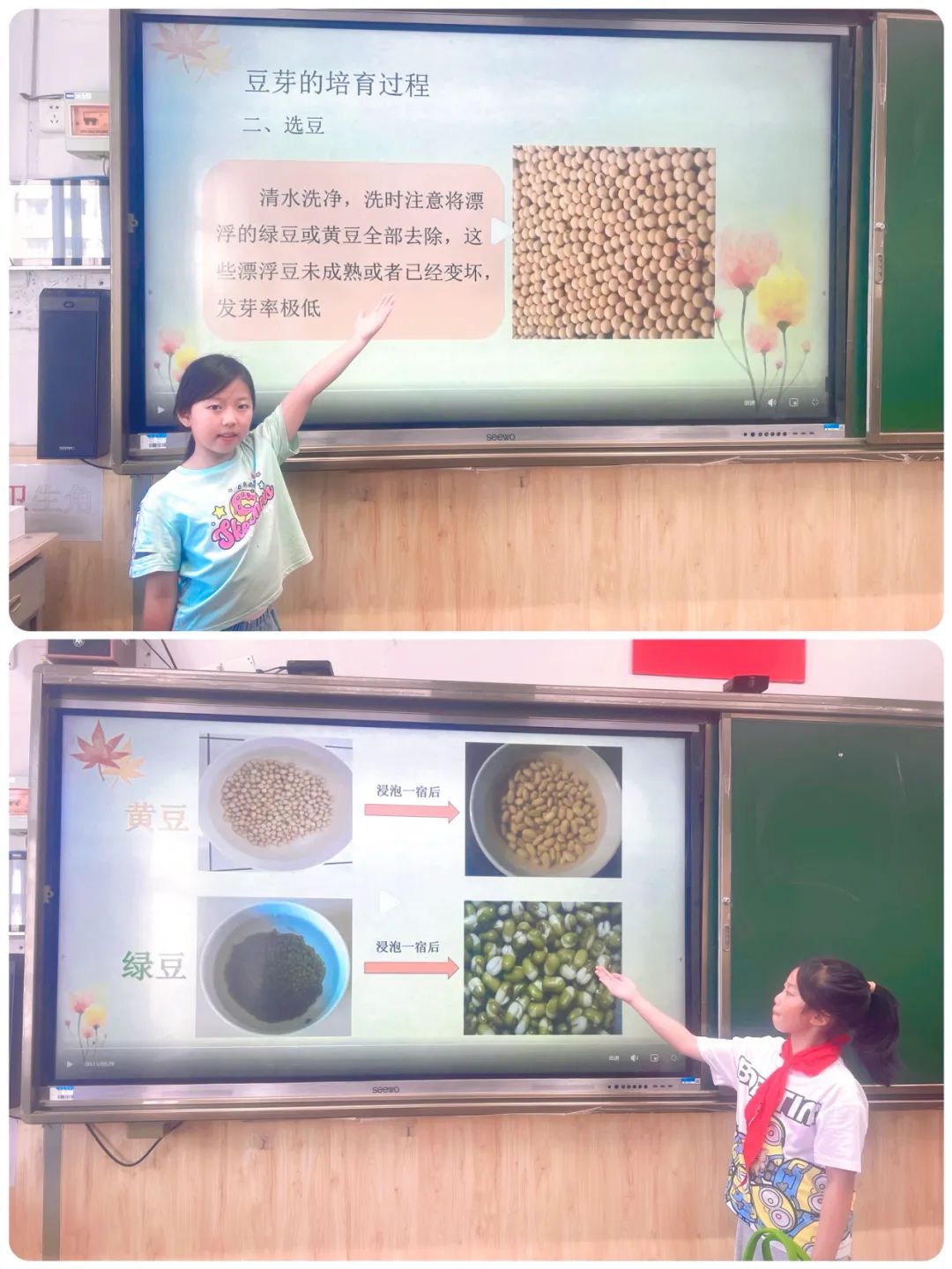 豆芽是千家万户餐桌上的家常菜,一年四季都可以享用。豆芽是如何来的呢?带着小小的疑惑,二年级的和燕少年们在课上跟着老师一起学习如何种豆,老师和同学们一起查阅相关资料,通过阅读绘本,观看豆芽成长视频等多种形式,了解了种植豆芽的小常识。