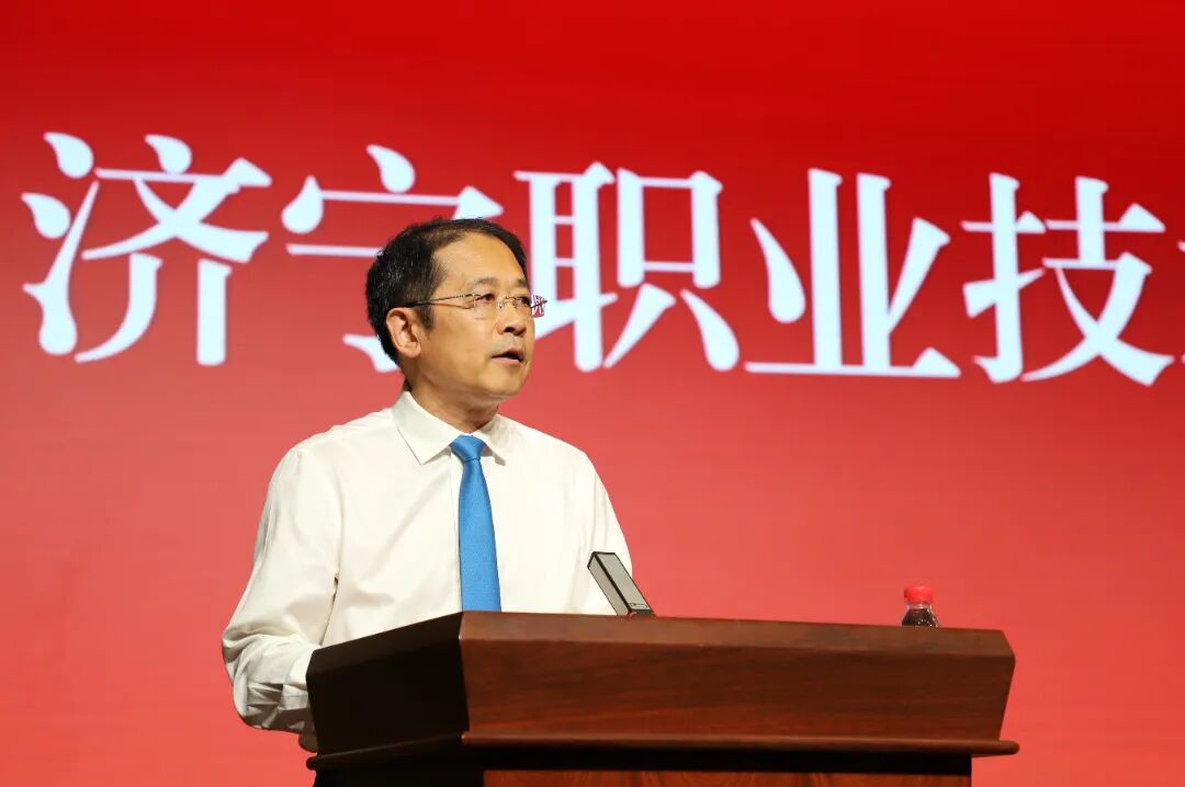 济宁市教育局副局长褚福梅,济宁市科技局党组成员、副局长王昌,济宁市公共就业和人才服务中心副主任马怀勇,济宁市市场监管局党组成员、副局长刘国柱,济宁市公共就业和人才服务中心技能鉴定部部长曲鲁东,我院党委书记高广立,党委副书记、院长李中国以及学院领导班子成员唐曙光、杨淑启、邱印江、佀传周、祝峰、于凌出席。优秀企业代表,学院各部门负责人,教师代表、毕业班辅导员、毕业生代表共500余人参加。典礼由学院副院长杨国锋主持。