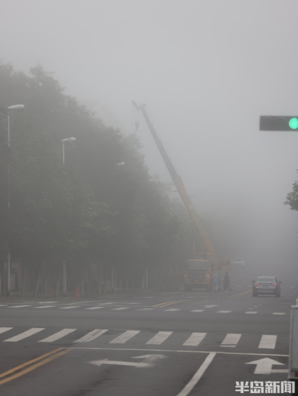 半岛全媒体记者 何毅7月7日,青岛市区沿海一线雾气弥漫,很多路上的车辆都开启了雾灯,受大雾天气影响,局部地区能见度不足百米。当日青岛市气象台发布了大雾黄色预警,海边湿度较大。交警部门也提醒广大驾驶员,雾天开车,缓慢行驶。