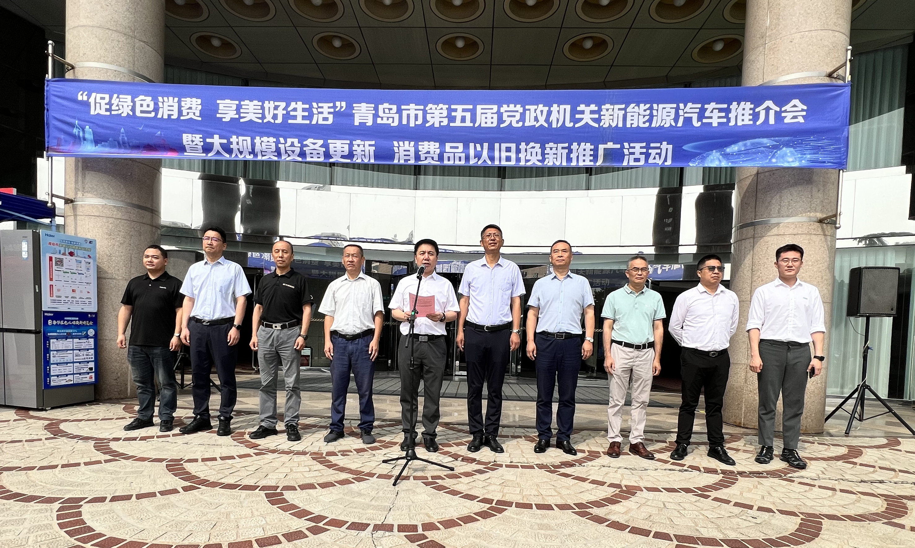 7月11日,青岛市机关事务服务中心联合市委市直机关工委、市工信局、市商务局以及国内知名新能源汽车和家电厂商,在市级机关会议中心举办“促绿色消费·享美好生活”第五届党政机关新能源汽车推介会暨大规模设备更新、消费品以旧换新推广活动。