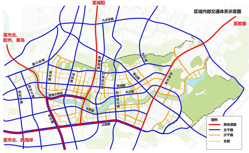 二是焕新城市风貌,打造青岛山河空间新范式。空间布局上,贯彻践行新一代生态营城理念,强调城市功能与周边山体、河道等自然景观的融合,追求空间的亲切感和舒适感。沿河两岸留足生态空间,布局低密度、组团式的建筑群落,地铁站点周边适度集中高层建筑。建筑设计上,坚持精品建筑,鼓励国内外高水平团队参与片区建筑方案设计,打造富有特色、造型优美的建筑集群。
