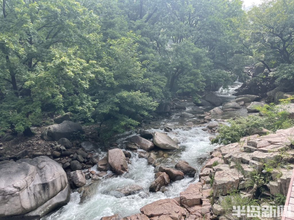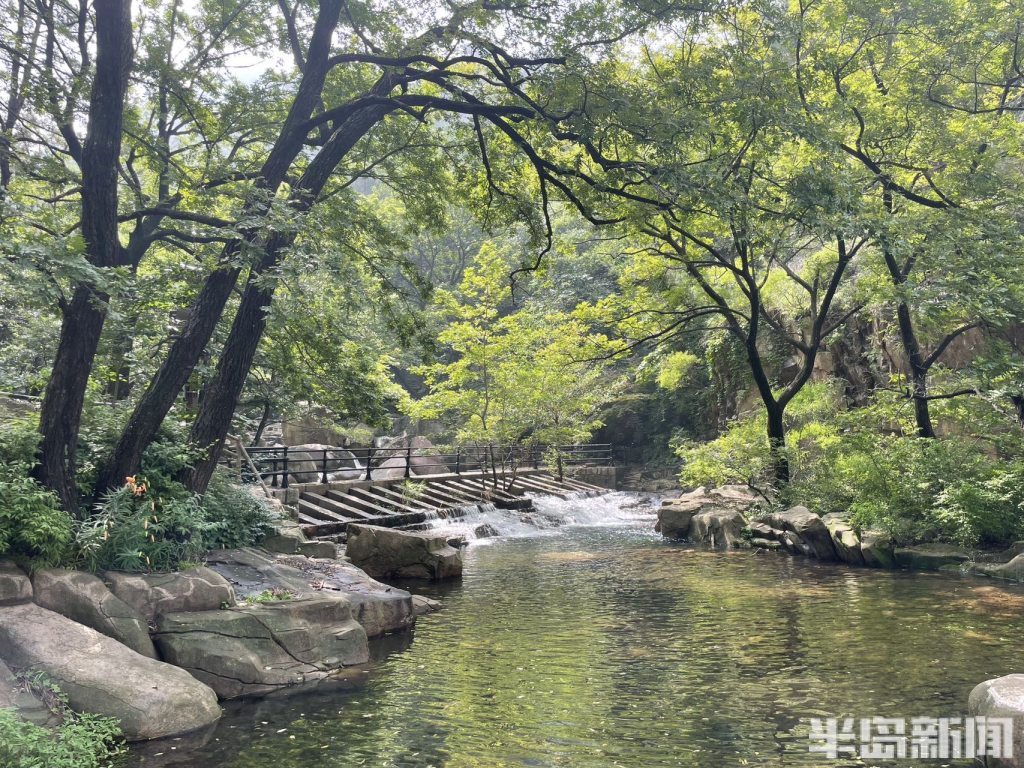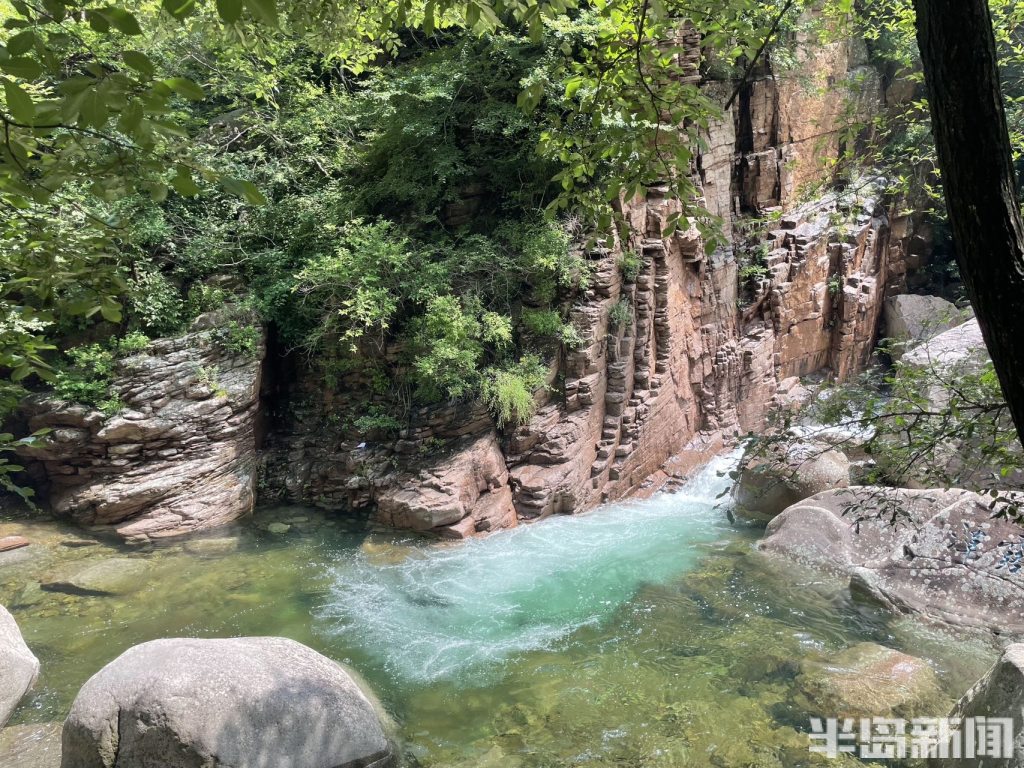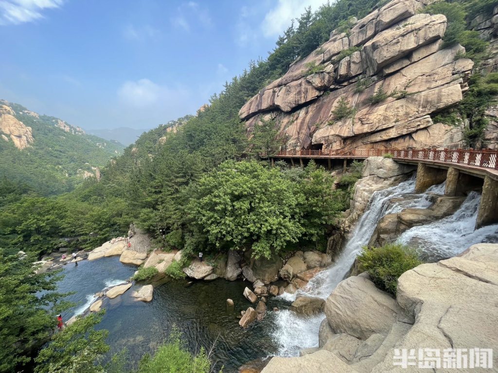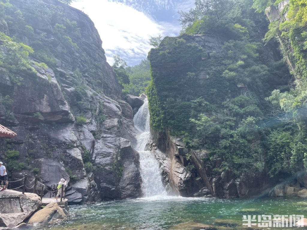 半岛全媒体记者 何毅7月18日,青岛连续多日的降雨过后,崂山北九水景区水量充沛,潮音瀑十分壮观,吸引了大量游人在此驻足拍照。清澈见底的潭水碧波荡漾,掩映在郁郁葱葱的绿树青山间,构成了一幅幅美丽的山水画卷。