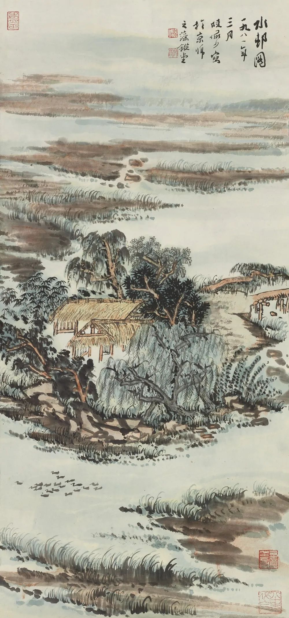 陆俨少《水村图》 96cm×46cm 1981年 中国国家画院藏