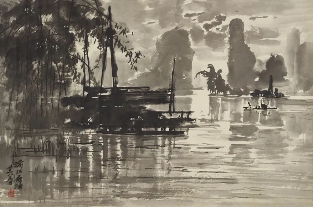 宗其香《漓江夜泊》44cm×66cm 约20世纪80年代 中国国家画院藏