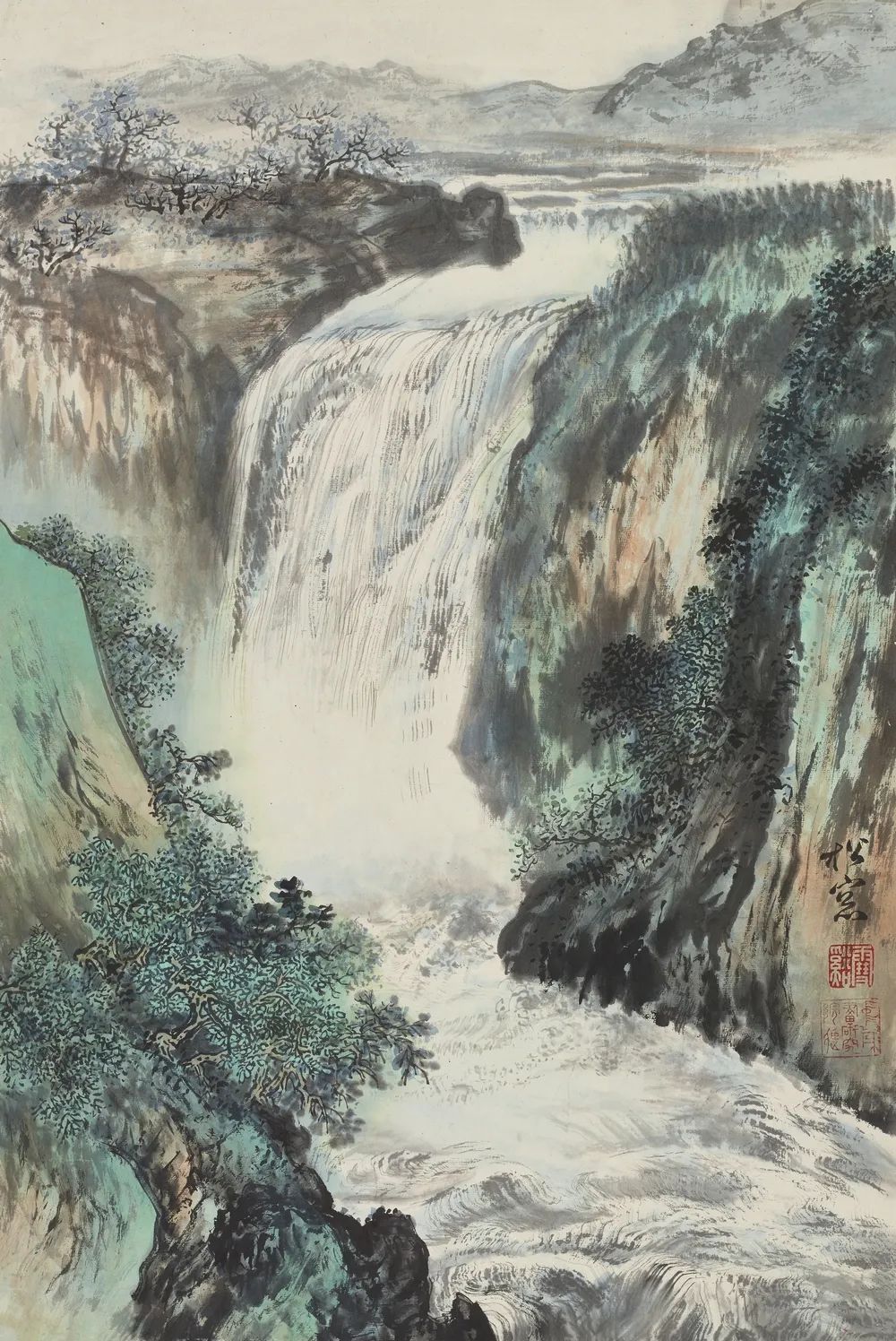 溥松窗《瀑布》67cm×45cm 约20世纪80年代 中国国家画院藏