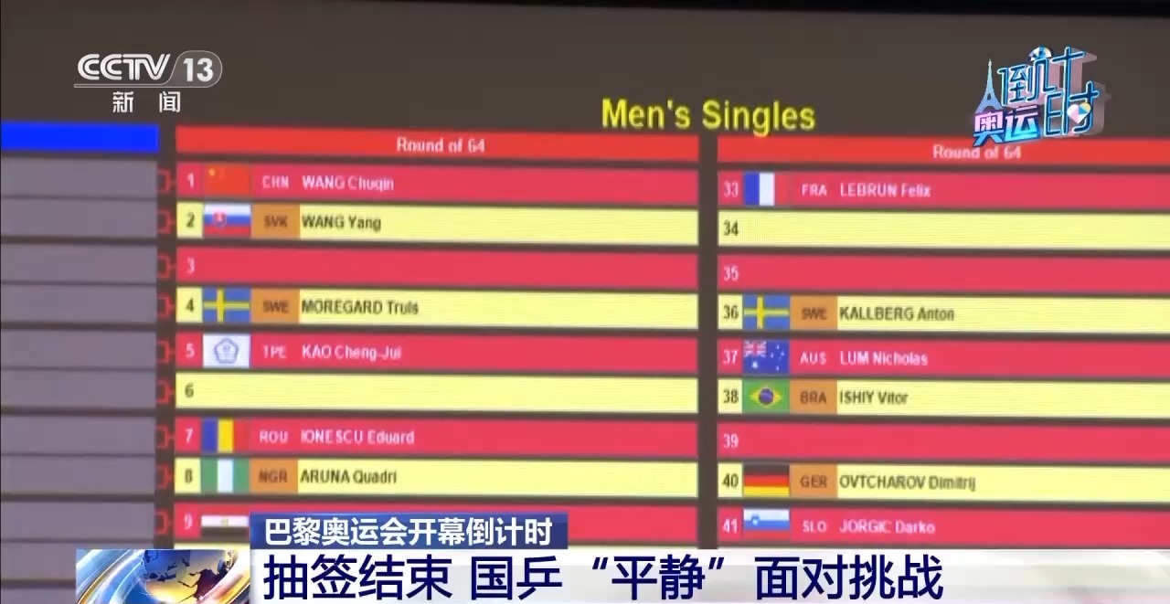 巴黎奥运会乒乓球项目抽签结束,国乒“平静”面对挑战