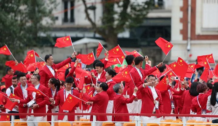 2024巴黎奥运会开幕式于北京时间7月27日1时30分在巴黎塞纳河上举行中国红亮相五星红旗闪耀塞纳河这一瞬,绝美!