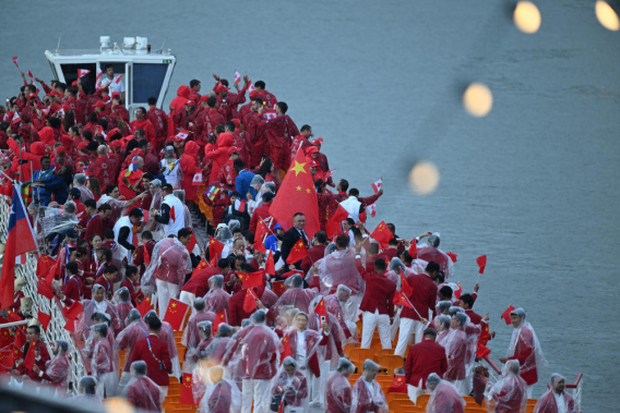 开幕式上,二人高擎五星红旗,中国体育代表团运动员乘坐游船在塞纳河巡游亮相。马龙在登船口接受采访时表示,他心情非常激动、自豪。