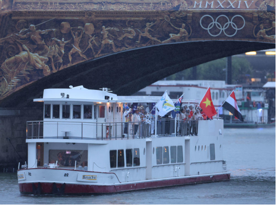 这是现代奥运会首次在开放式城市空间举行开幕式。整个开幕式以城市做背景、河流为跑道、码头当坐席,205个代表团约6800名运动员搭乘85艘船只,从奥斯特里茨桥出发,向西航行约6公里,途经巴黎圣母院、卢浮宫、协和广场等标志性建筑,至埃菲尔铁塔对岸的特罗卡德罗广场参加庆祝仪式。河流、建筑、桥梁构成了天然舞台,体育、历史、艺术在塞纳河完美融合。