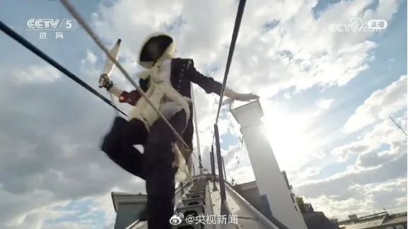 火炬手戴着面具穿梭于巴黎的各个屋顶和地标建筑之间,他不仅是火炬传递的关键人物,也是开幕式上的一大亮点。他的出现为开幕式增添了几分神秘色彩和紧张氛围。