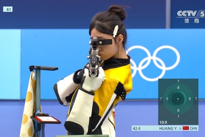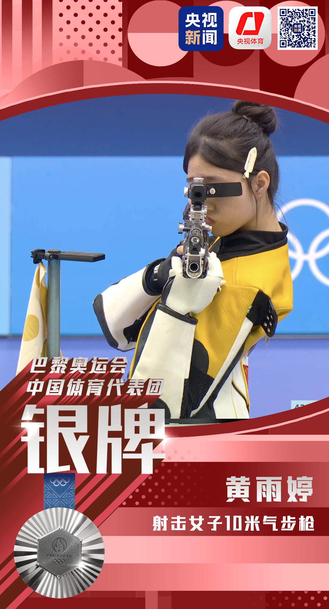 7月29日,在巴黎奥运会射击女子10米气步枪决赛中,中国选手黄雨婷夺得银牌。