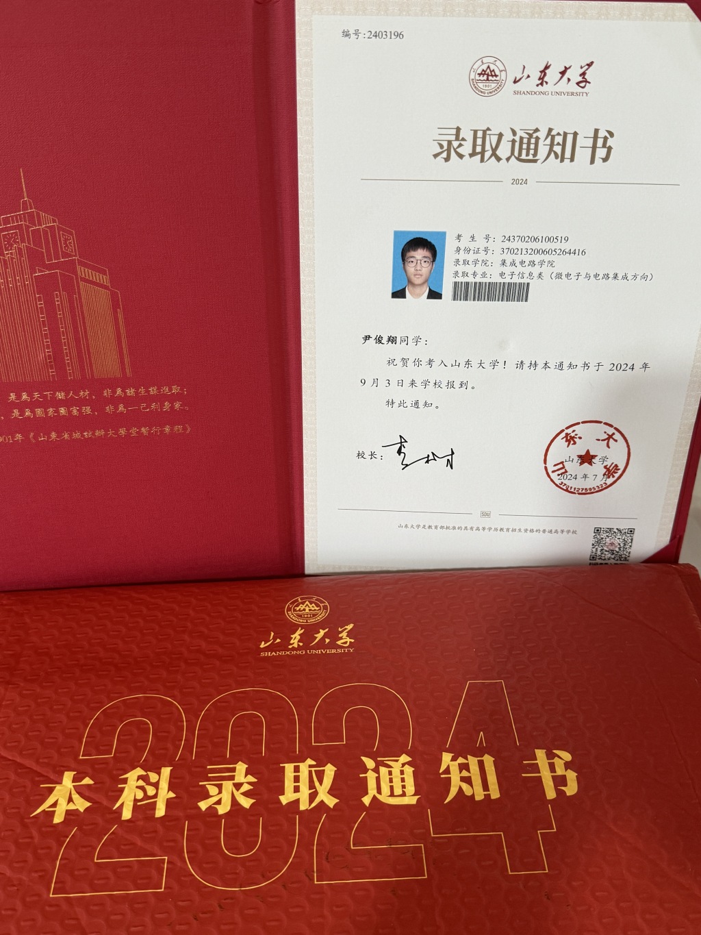 “没想到是我妈过来给我送录取通知书,开门的那一瞬间,心情是非常激动的!”尹俊翔告诉记者,能够取得635分的成绩,能够被山东大学录取,他和家人都十分开心。