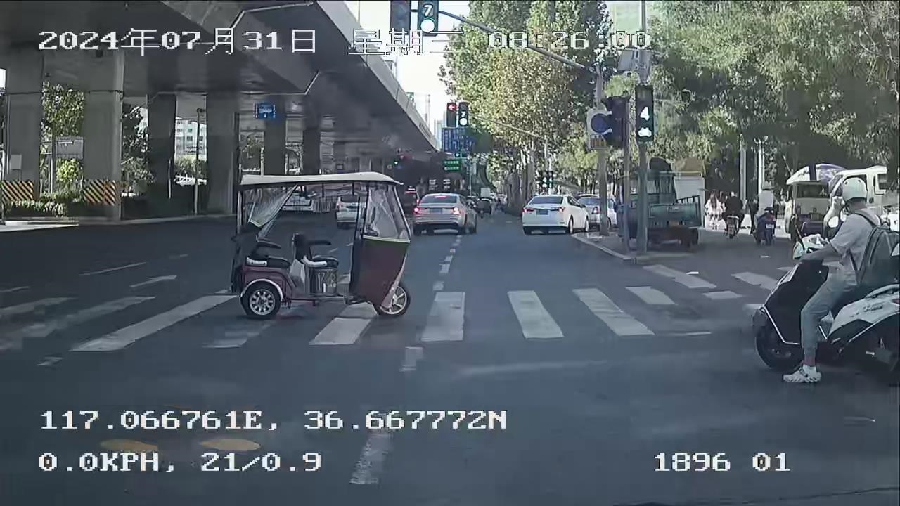7月31日8点25分,济南公交K46路驾驶员王毅驾驶车辆行驶到二环东路解放路路口准备右转时,突然路边停着的一辆三轮车发生溜车现象。此时二环东路正南北绿灯通行,由于事发突然,当时无人察觉到这个危险情况。三轮车一直溜到了道路中间,给过往的车辆造成了安全隐患。