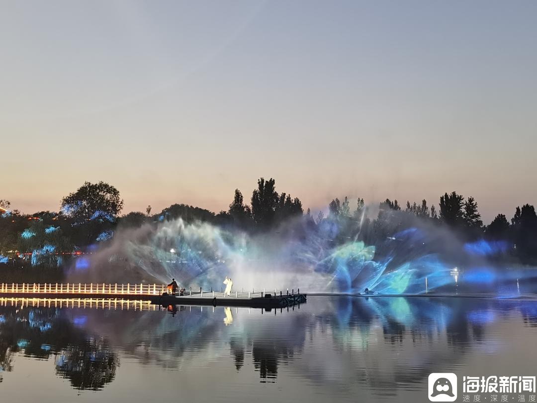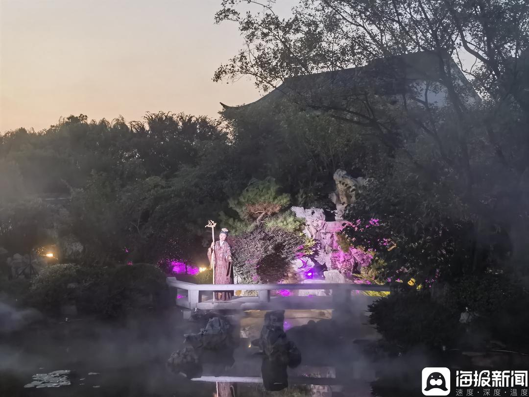 世界风筝公园在光影的点缀下化身一方沉浸式舞台,《梦起潍坊》的演出区域与园区场地深度融合,每个角落都有故事,每段街道都有美景。观众们行走在于桥边河畔,在光影之中,恍如与戏中人同处一个时空,身临其境地感受戏中人的儿女情长、豪情壮志与悲欢离合。