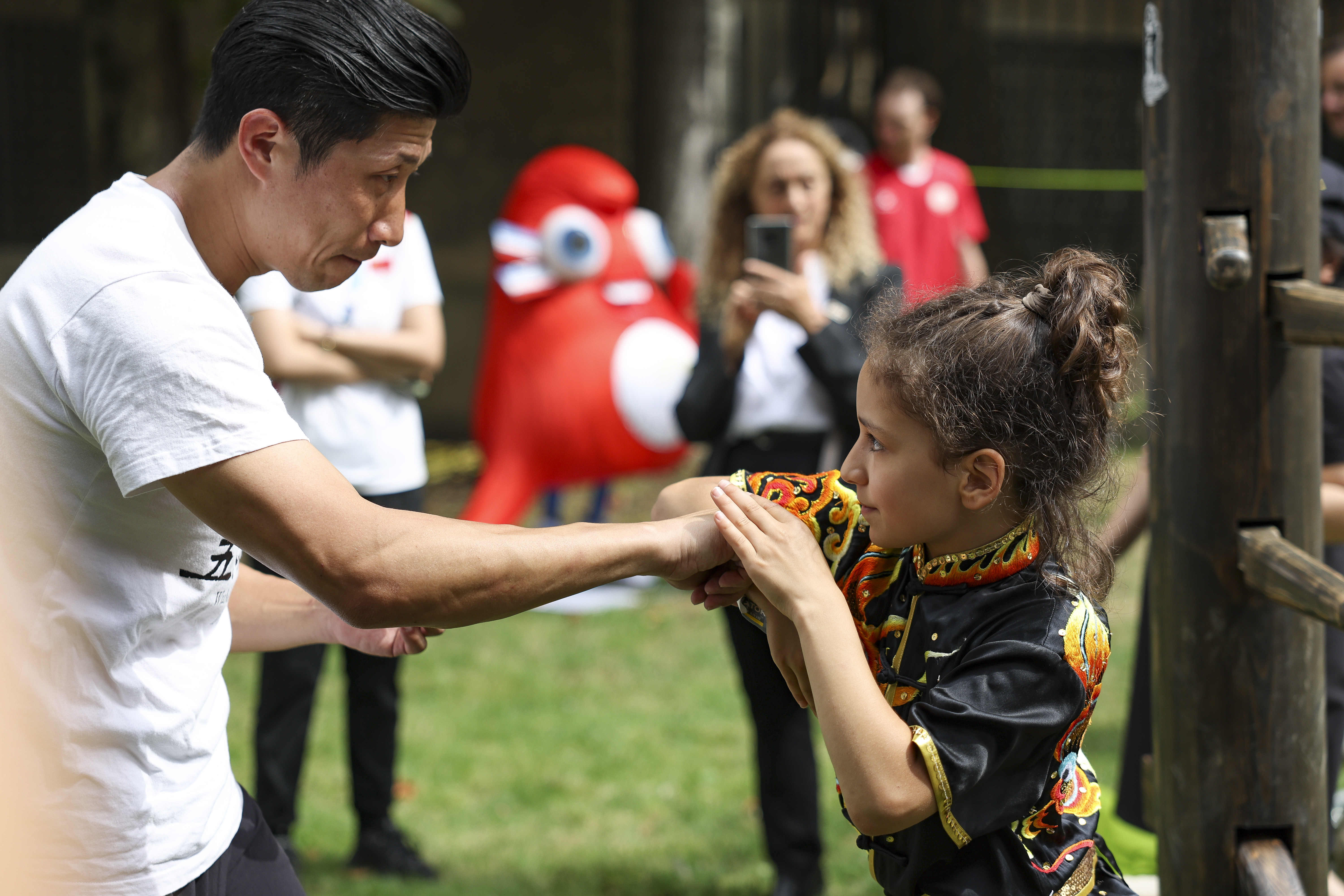 巴黎“中国之家”开展中国传统体育文化主题活动,邀请法国当地青少年前来体验捶丸、踢毽、投壶、武术等中国传统体育。新华社记者 胡星宇 摄