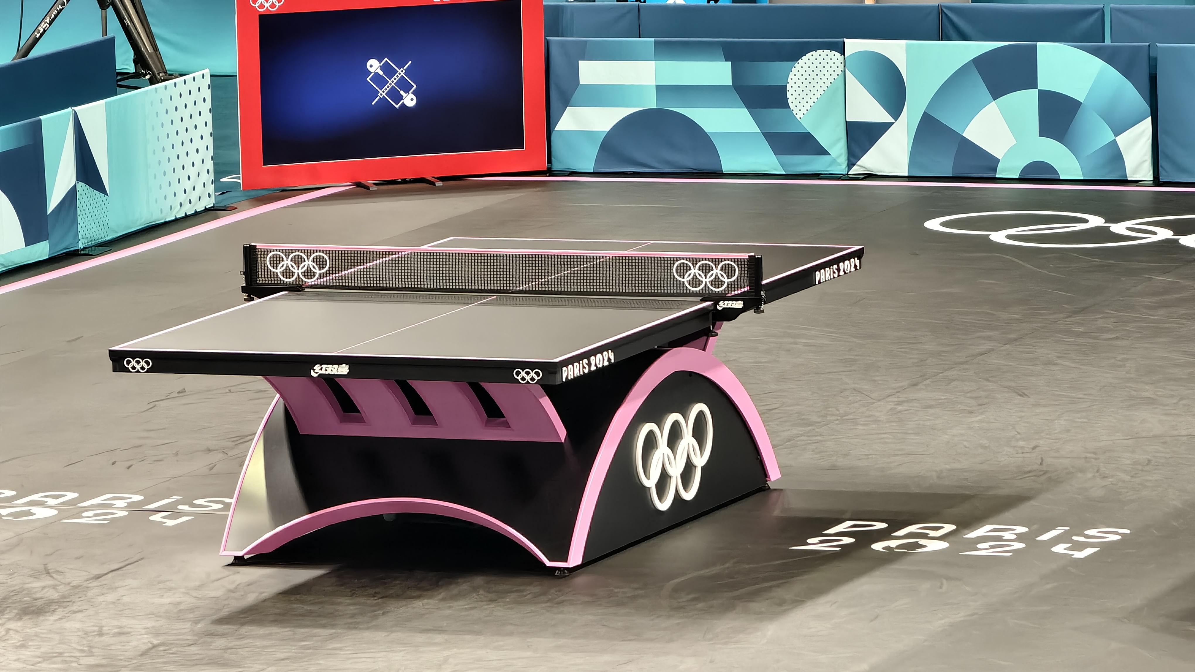 当地时间8月3日,奥运会乒乓球女子单打决赛的乒乓球台。新华社记者 马知遥 摄