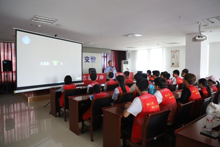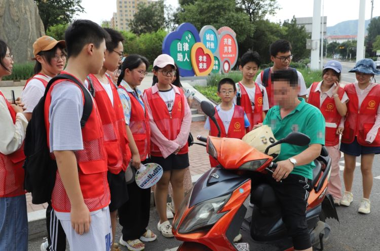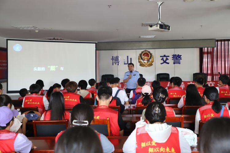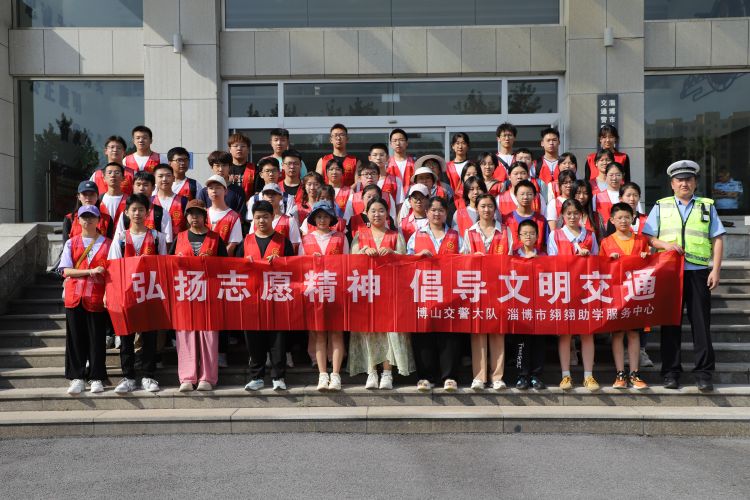 为进一步增强中学生的交通安全意识和自我保护能力,帮助学生从小养成安全文明出行的良好习惯,8月7日,淄博市公安局交通警察支队博山大队与淄博市翗翗助学服务中心联合开展“文明出行 平安你我”交通安全志愿服务活动。