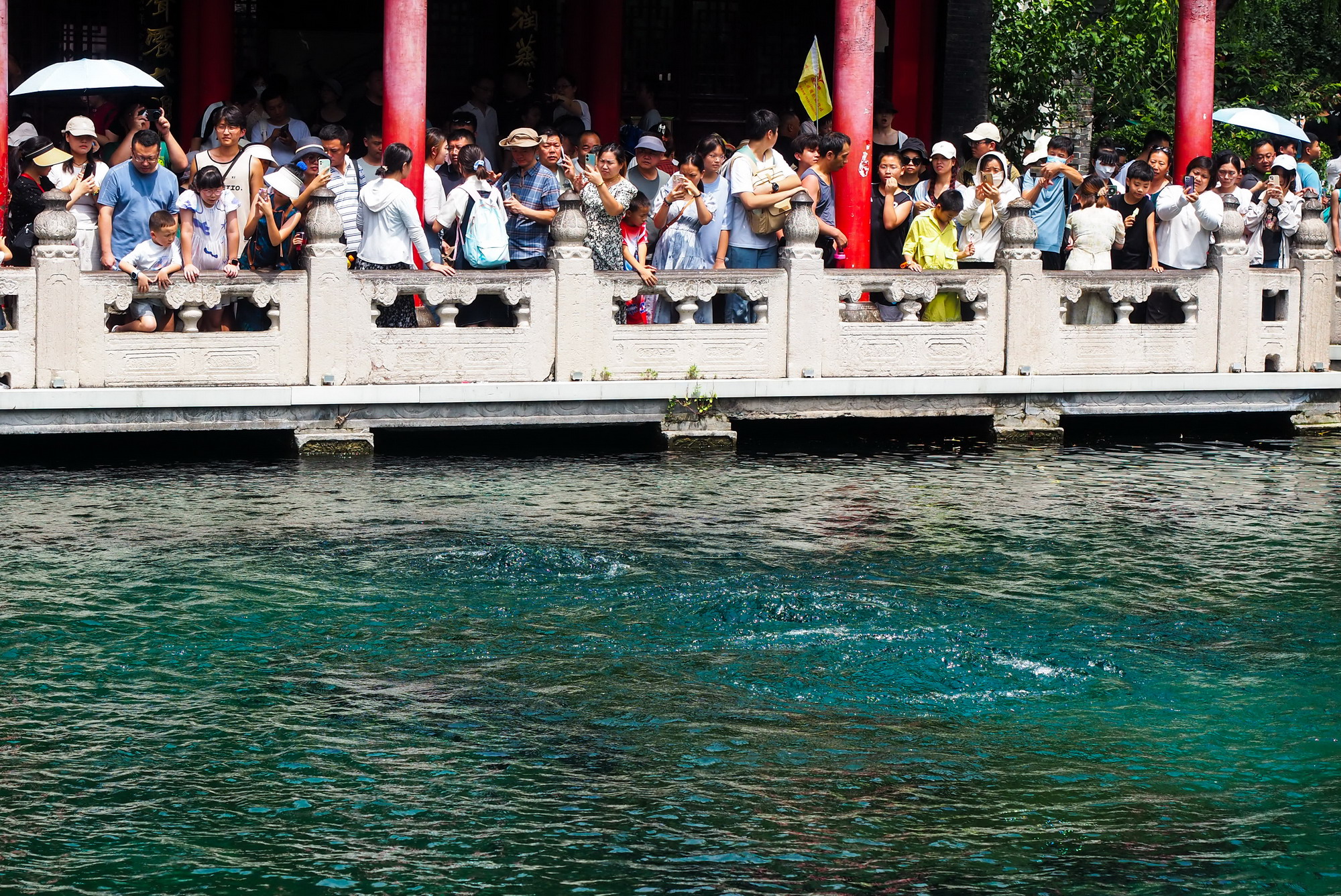 8月13日早晨,济南趵突泉水位达到28.50米,正式回升至“趵突腾空”的高度。三个泉眼喷涌劲头比一个月前有巨大的变化,水花翻涌着蹿出水面哗哗作响。美丽的泉景吸引了数以万计的游客围观欣赏。预报本周末前后济南还可能有雨,济南泉水水位也将进入年度丰水期。(齐鲁晚报·齐鲁壹点客户端记者 周青先)
