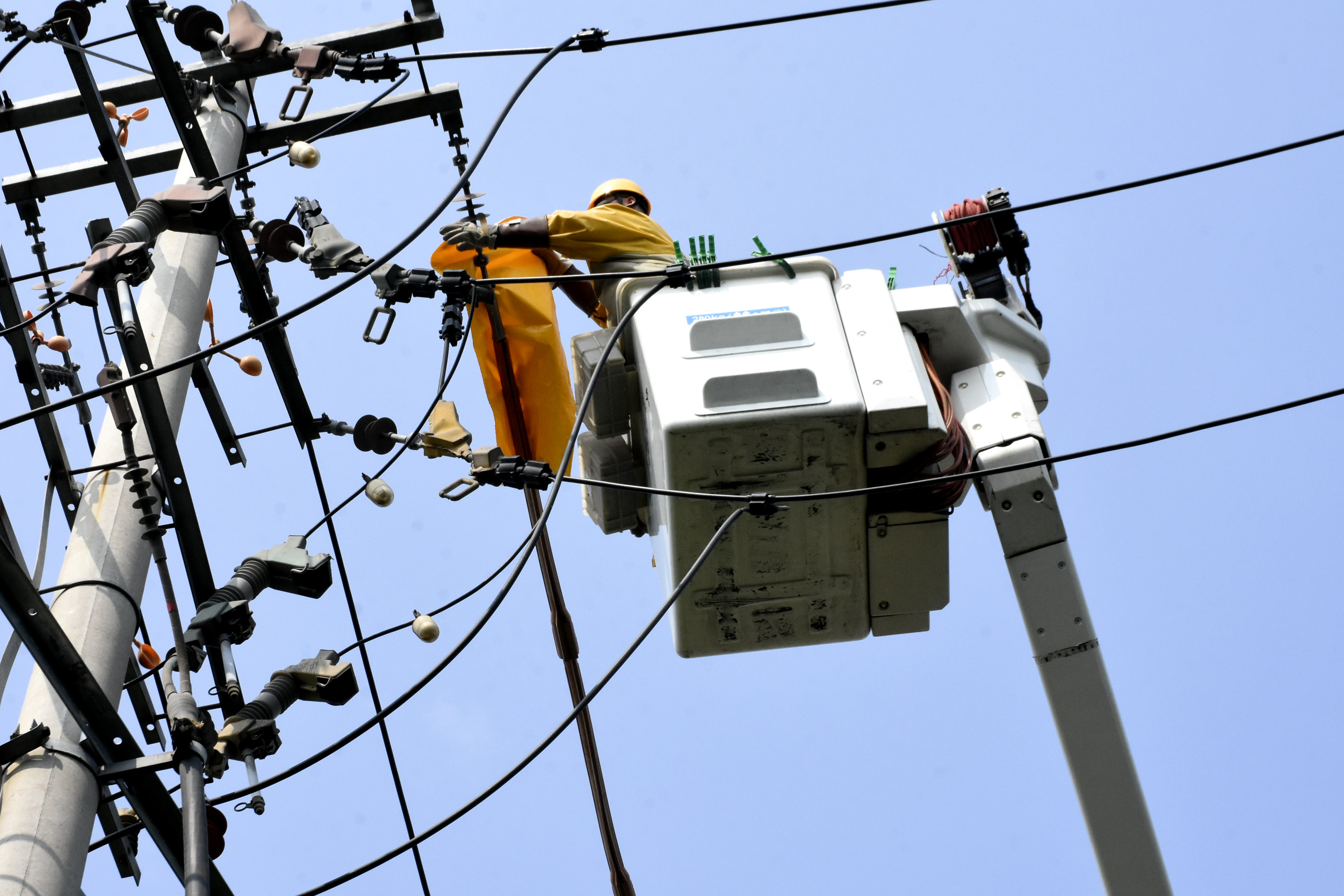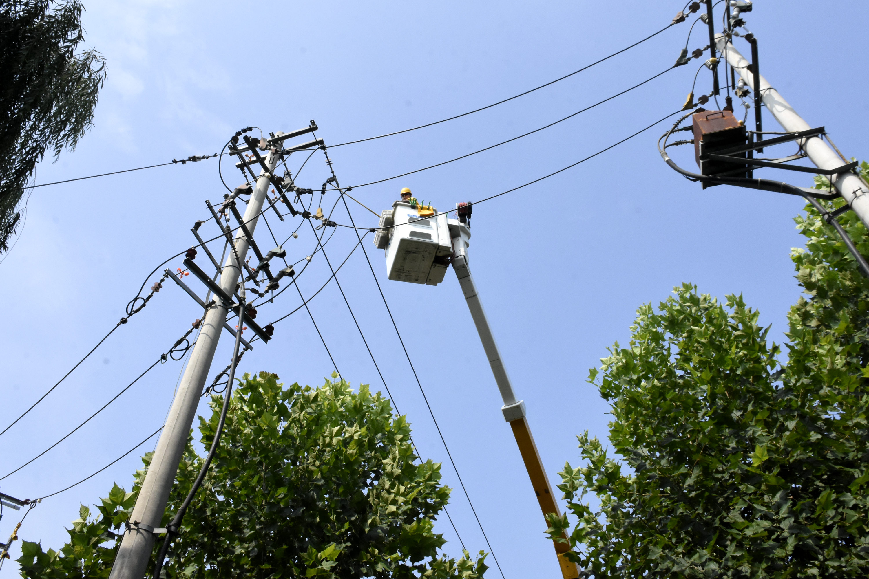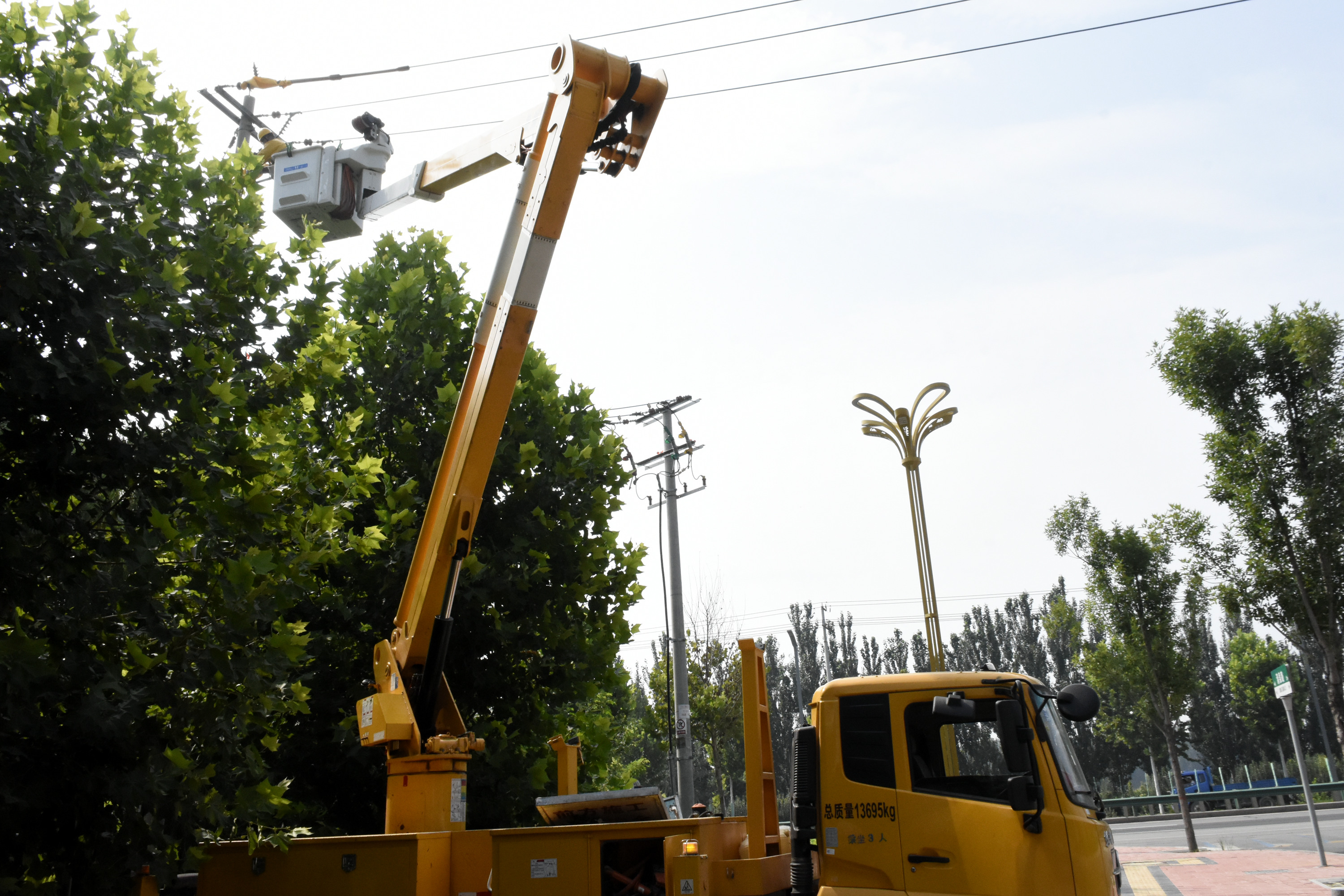8月21日,国网冠县供电公司带电作业人员对10千伏东街线147号杆进行带电接引线工作,进一步提高线路供电可靠性,保障客户安全可靠用电。(大众新闻 杨丹)