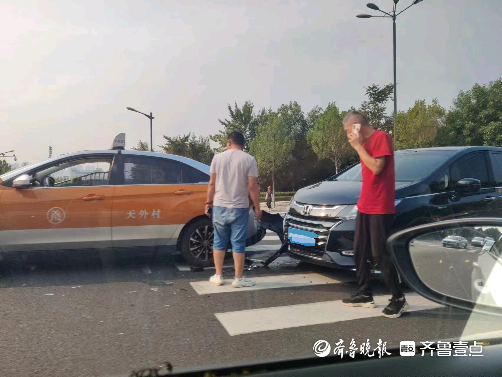 情报站|泰安环山路一私家车和出租车追尾,出租车后保险杠损坏