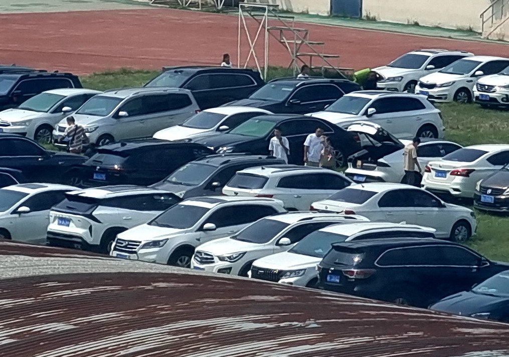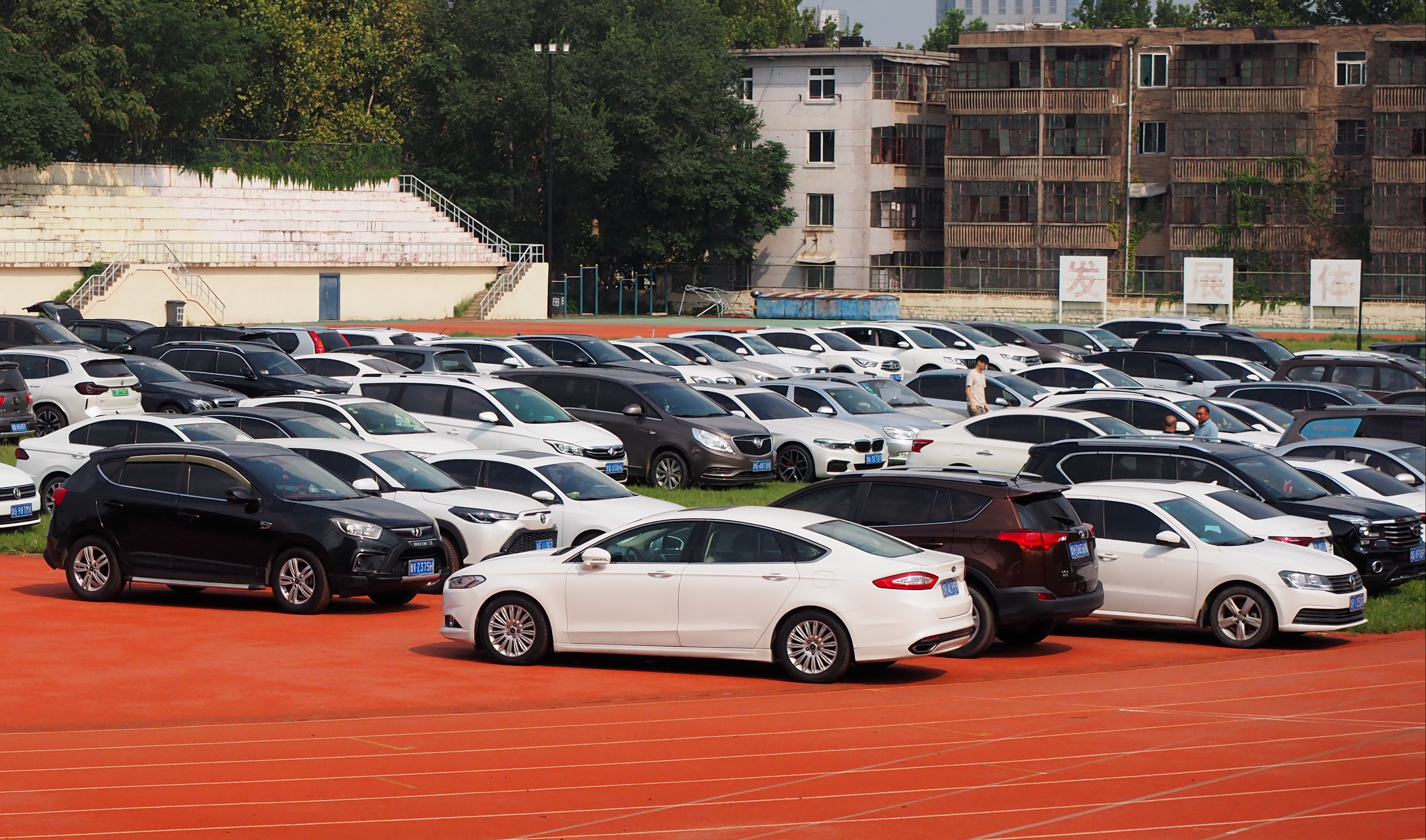济南各高校新生报到大多乘私家车,山东师大体育场暂变停车场