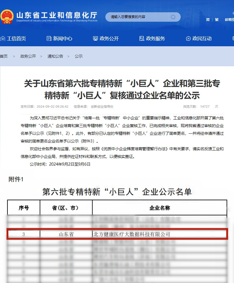 北方健康荣膺国家级专精特新“小巨人”企业 引领健康医疗大数据产业发展
