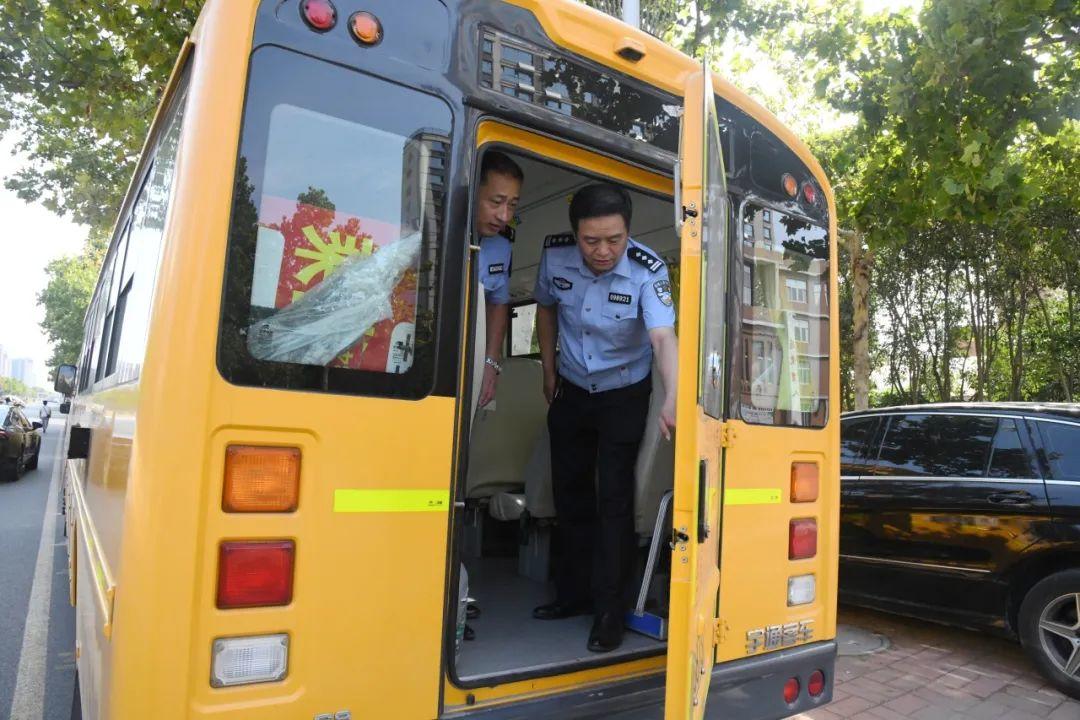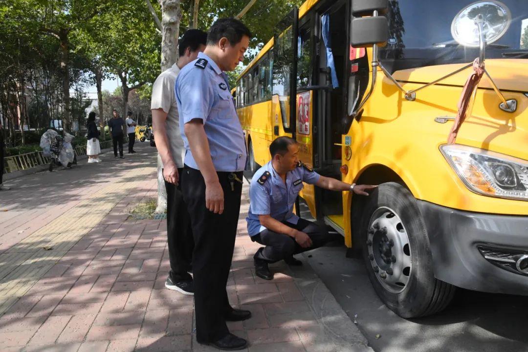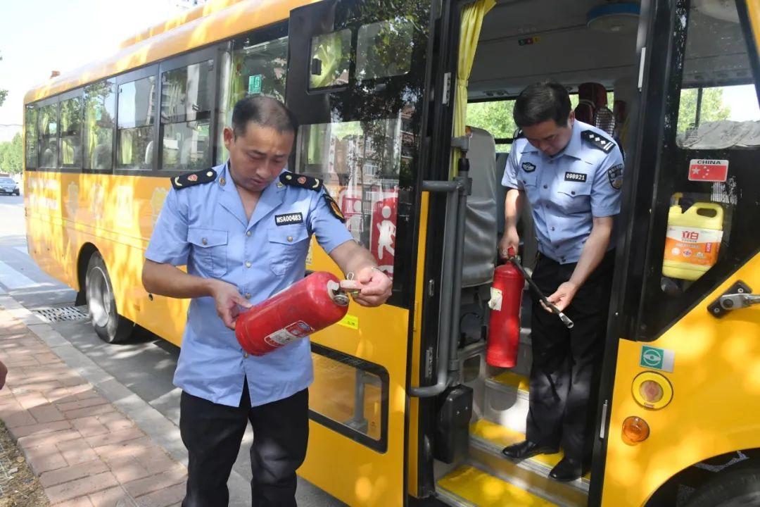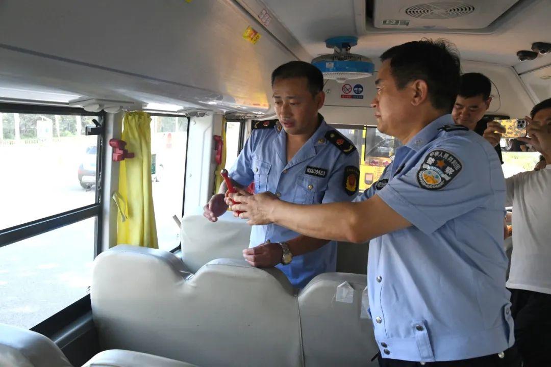 民警重点检查了校车安全锤、停车示意牌、应急出口、灯光、校车轮胎、消防器材、外观标识及车载医药箱等设备设施,确保其性能良好、有效。对检查中发现的问题,现场责令校车服务提供单位及时进行整改,确保车况良好,杜绝“黑校车”“带病车”上路。