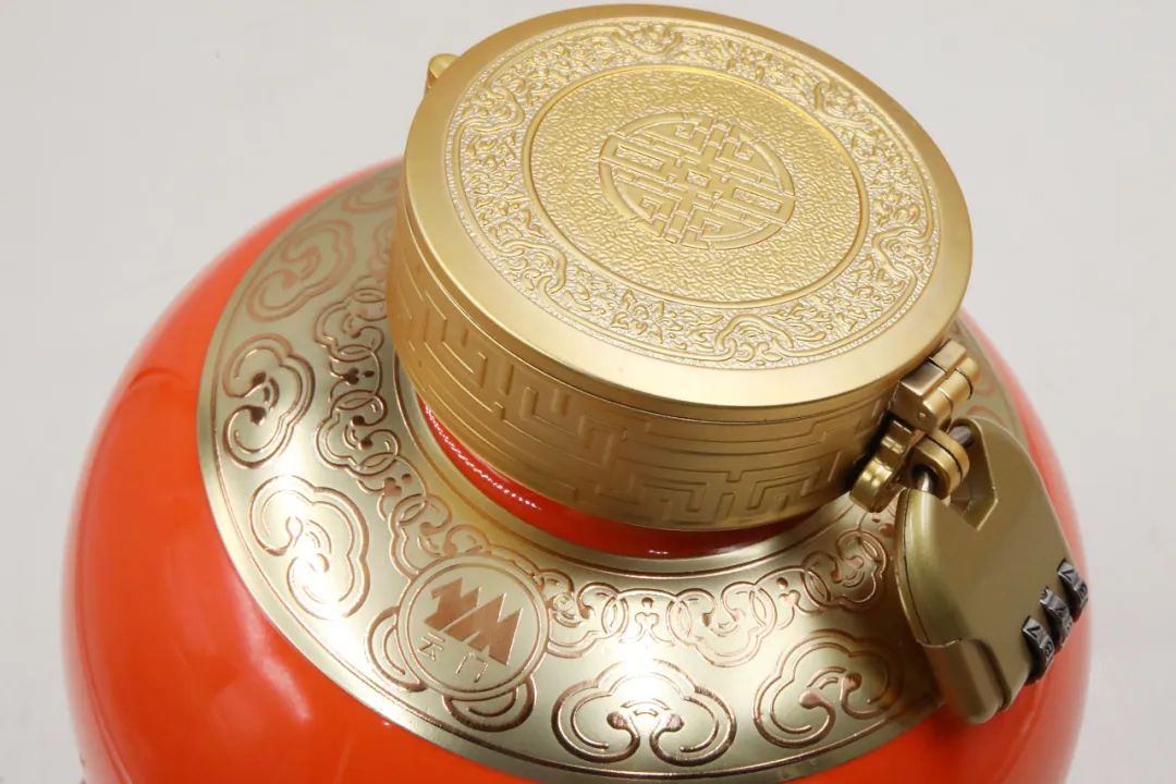 坛身与坛盖,环绕金色如意云纹,寓意福运绵延悠长;云门酱酒国标与云门酒业建厂76周年纪念酒标识,以烫金工艺镶嵌其上,彰显非凡意义。