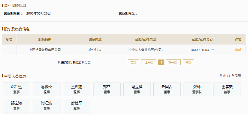 国家企业信用信息公示系统显示,湖南云箭集团有限公司成立于2003年,法定代表人为张琼,注册资本30000万元人民币,由中国兵器装备集团有限公司全资持股。