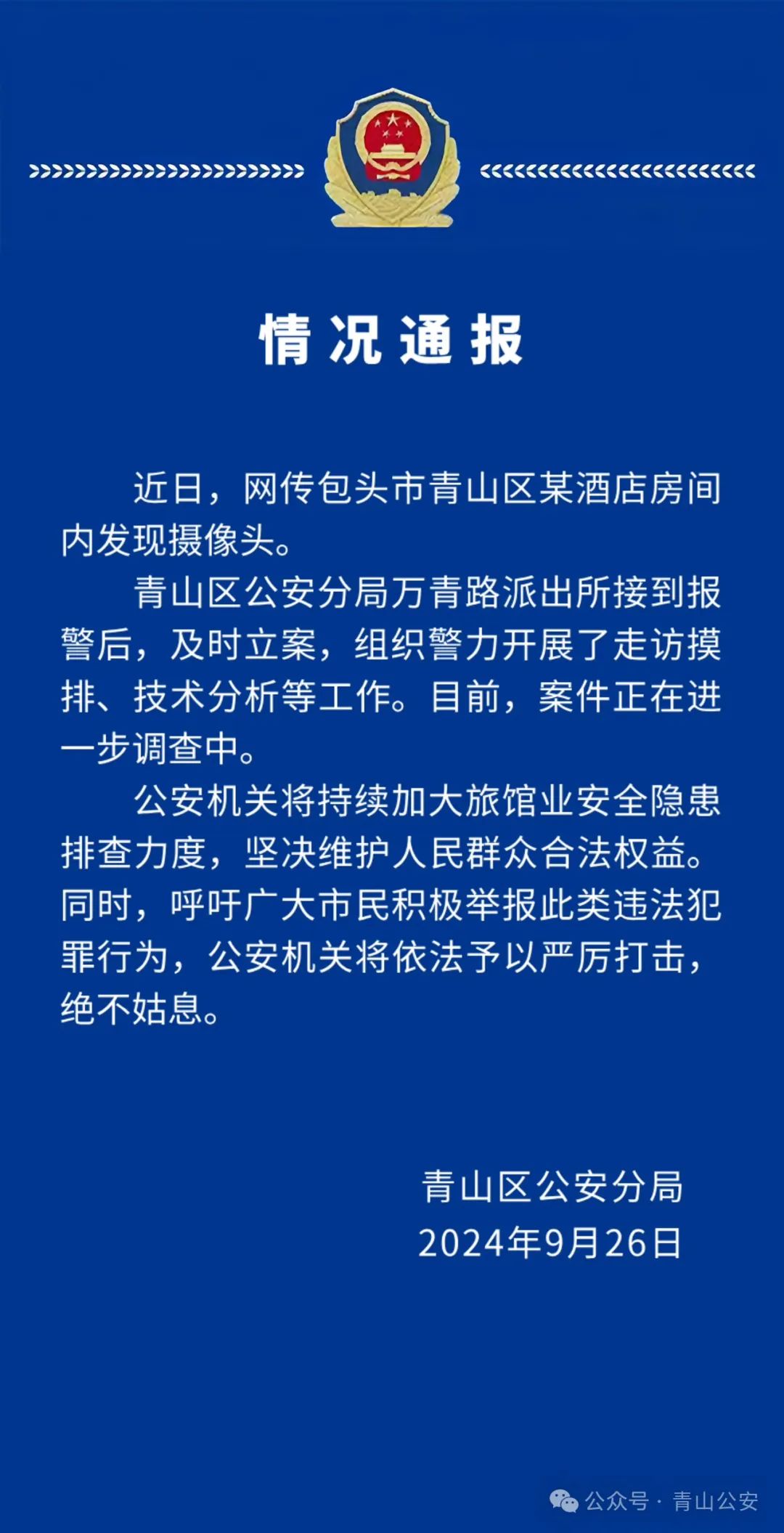 9月24日,有网友反映自己在内蒙古包头一酒店内发现摄像头,至今没有处理结果。
