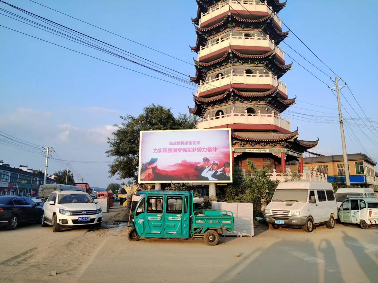 充分利用镇商业集中地的LED屏滚动播放国防教育相关标语,进一步营造了全社会关心、支持和参与国防建设的浓厚氛围。让辖区群众在家门口学习国防知识,使关心国防、热爱国防、建设国防的全民国防意识进一步深入人心。