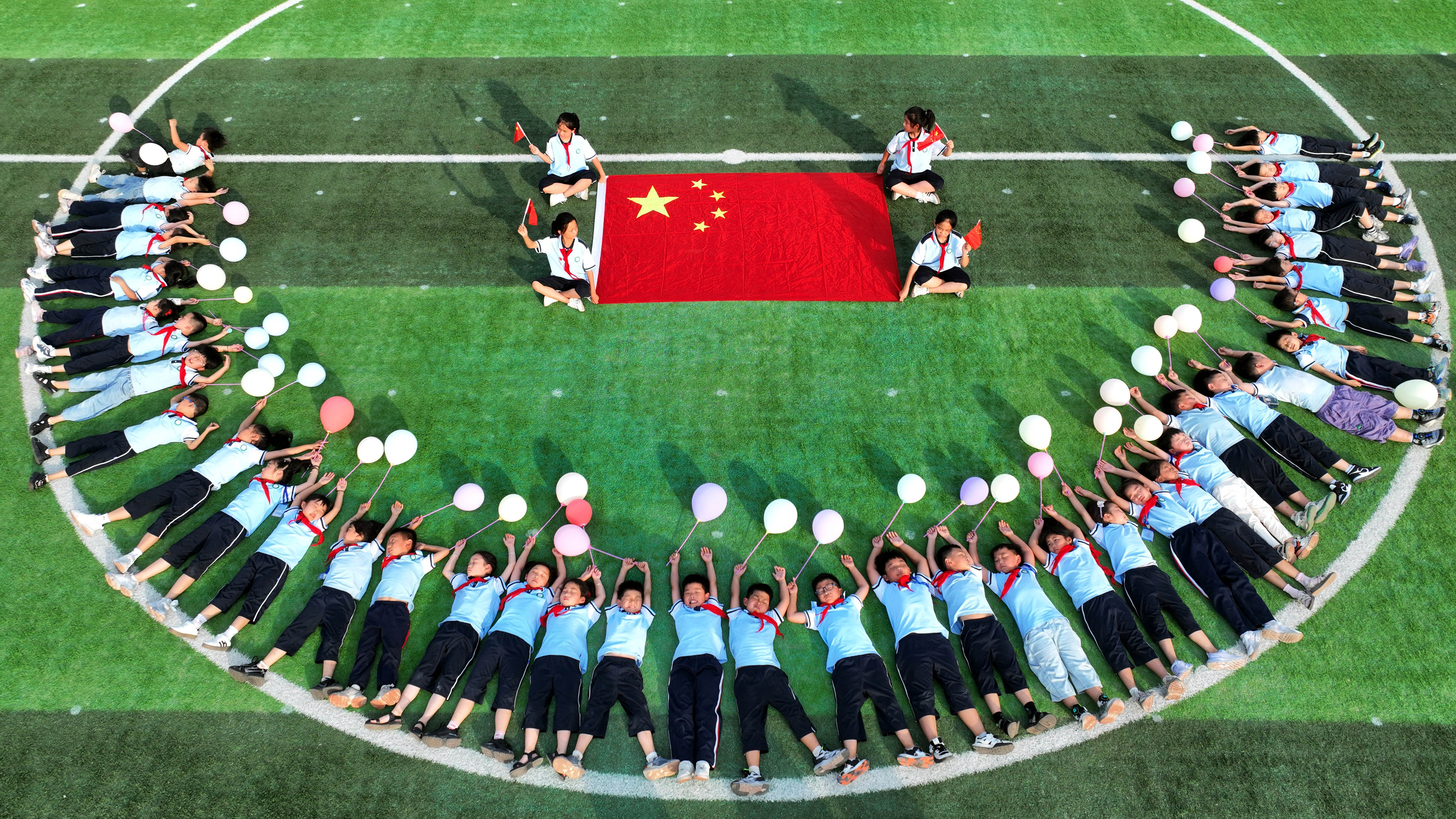 国庆节来临之际,临沂市郯城县马头镇中心小学国庆节主题课堂上,孩子们和国旗合影,并高唱爱国歌曲。学校开展“童心颂祖国 欢歌迎国庆”主题活动,孩子们通过歌唱爱国歌曲、与国旗合影、学习国旗国徽知识等,喜迎国庆节的到来。(大众新闻·齐鲁壹点客户端记者 周青先 通讯员 房德华 )