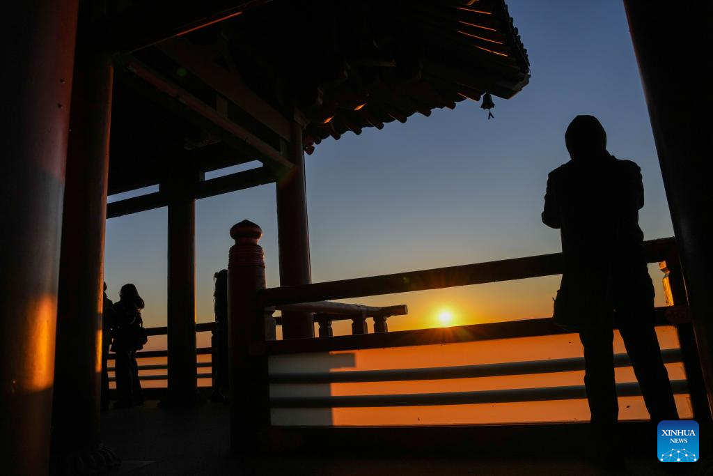 Tourists enjoy sunrise scenery in Fuyuan City, NE China’s Heilongjiang