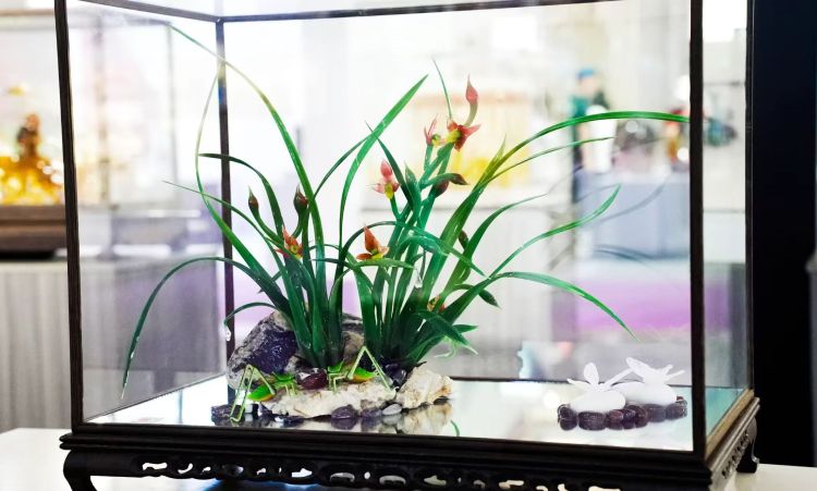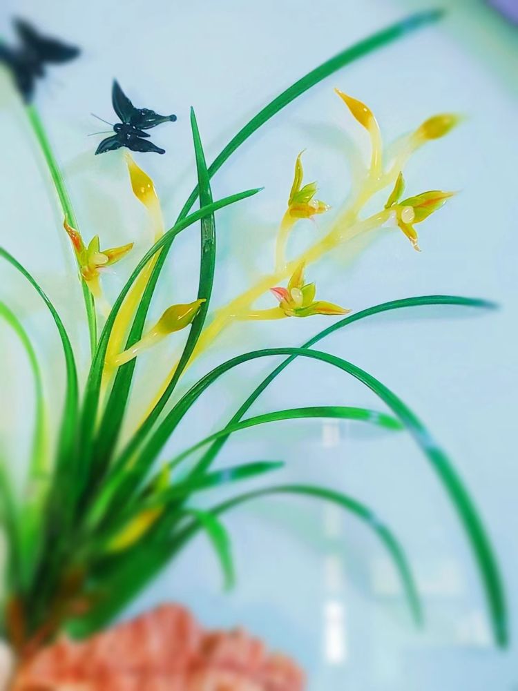 “用琉璃艺术来体现兰花,既要体现出兰花美的形态,又要有兰花动态的神韵。兰花的叶子需要灵动,在制作过程中最需要高超的技艺,尤其是叶子上的小水滴,到底选在叶梢还是叶子中间,都是需要仔细斟酌的。”在创作过程中,彭青艾非常注重细节的处理。她认为,细节决定成败,一件好的琉璃作品,不仅要有精美的外观,更要有丰富的内涵。因此,她在创作过程中,总是精益求精,力求将每一件作品都打造成为精品。