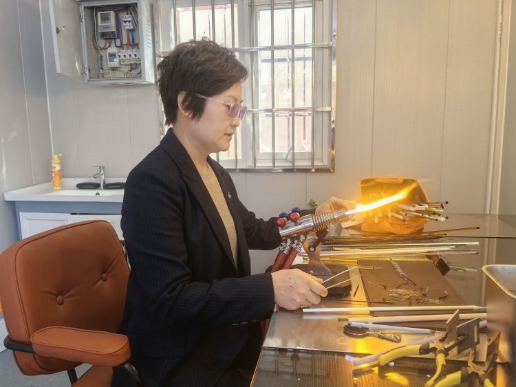 “最近刚成立了自己的琉璃艺术馆,每天订单不断,经常要忙到半夜!”10月14日,彭青艾琉璃艺术馆内,彭青艾正在赶制一批外地订单。这个名字中带有温婉与坚韧的70后琉璃爱好者,她的生命轨迹与琉璃艺术紧密相连,二十年前从泰安来到淄博并定居于此,彭青艾的人生因琉璃而焕发出别样的光彩。