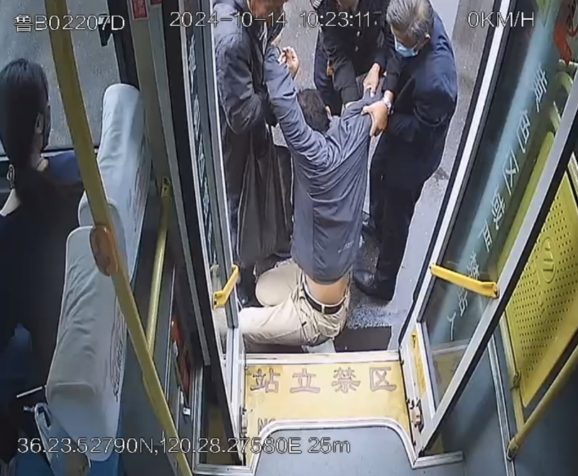 10 月 14 日上午 10 点 20 分,青岛交运即墨温馨巴士公司公交二队旅游一号线(2101)路驾驶员周丕涛驾驶鲁B02207D车辆正常运行班次,在东关菜市场站牌处停车上下客时,忽然听到乘客呼叫声,察觉到意外的他第一时间将车停靠至安全地带,随后看到位于后排的一位男性乘客双腿无力,瘫坐在地上不省人事,情况十分危急,如果不采取急救措施,后果不堪设想。