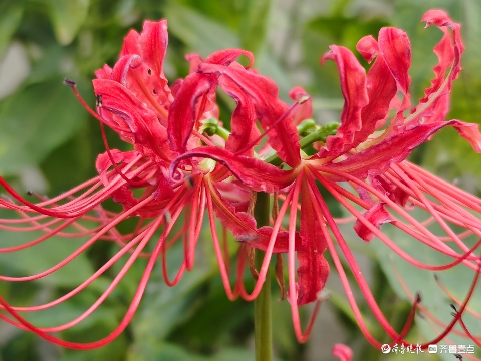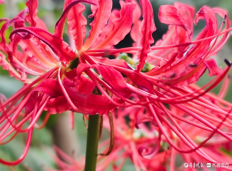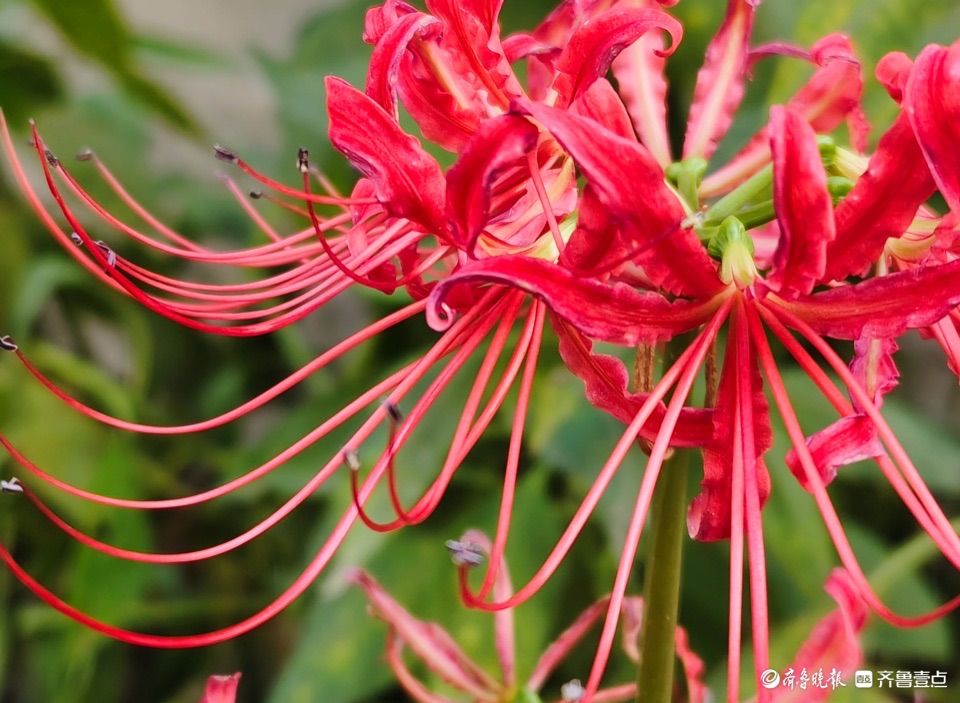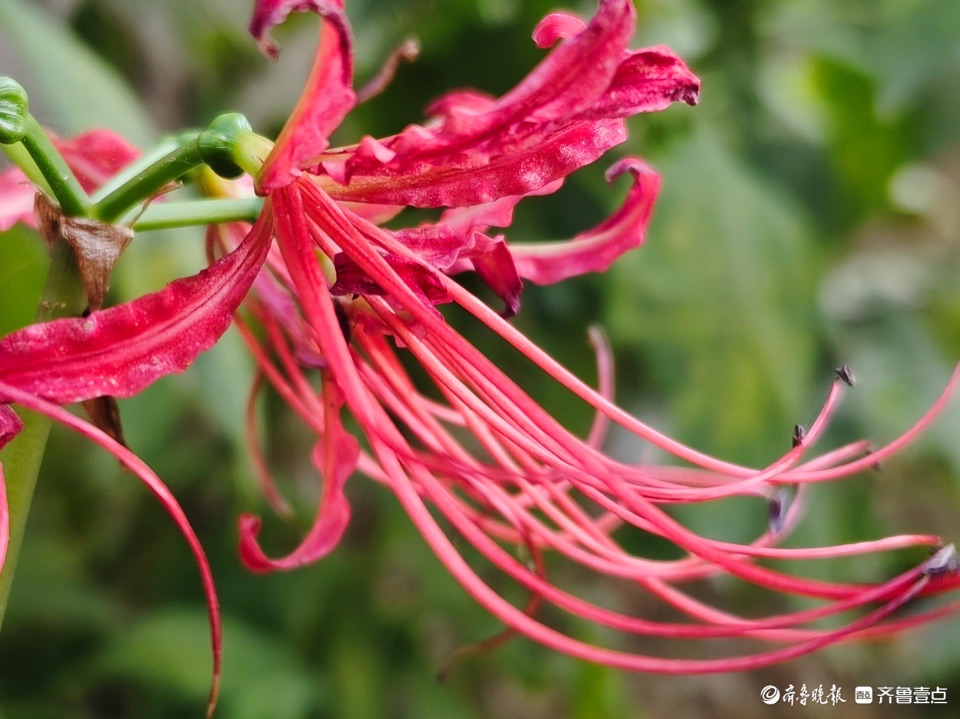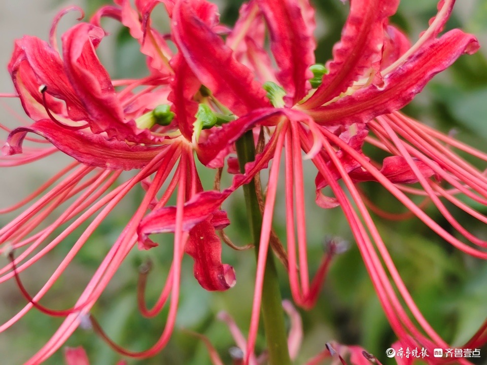 清晨,邻居种植的龙爪花开出花儿,奇怪的是花开不见叶。这种花是茎秆从地面突然冒出,在顶端绽放花朵,所以也称为“平地一声雷”。 (高军 摄)