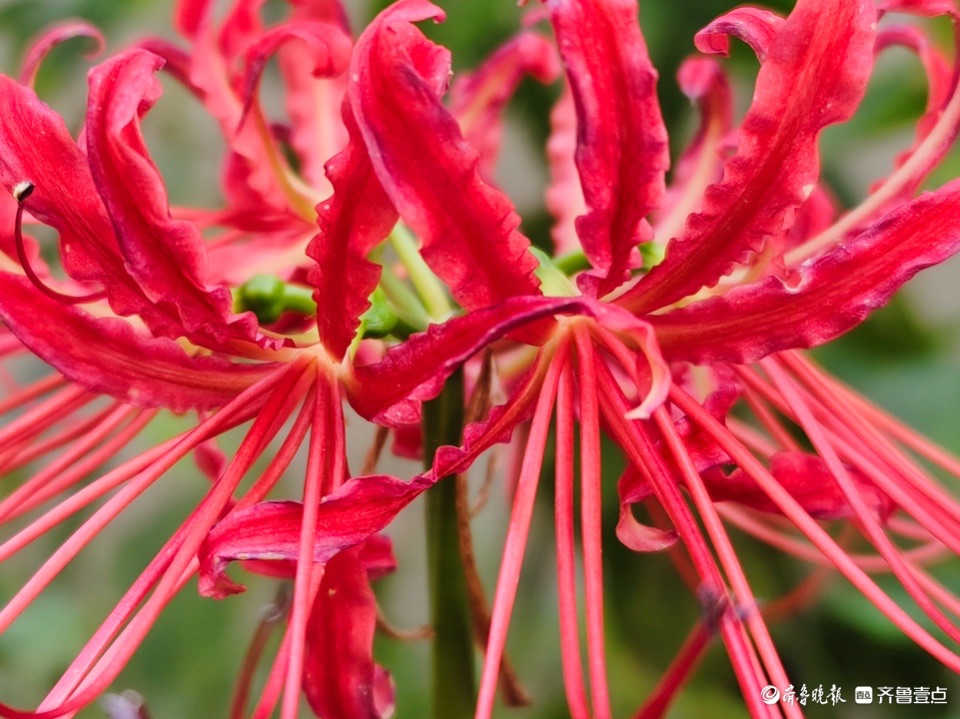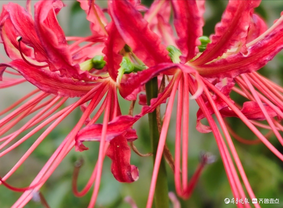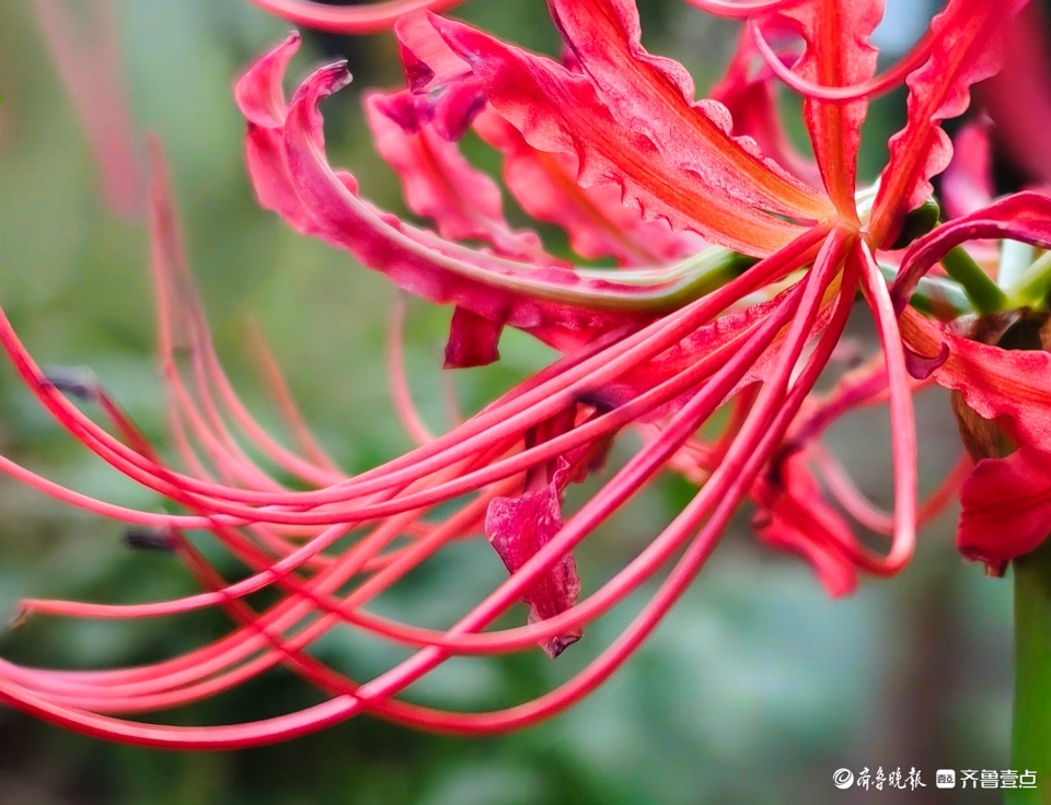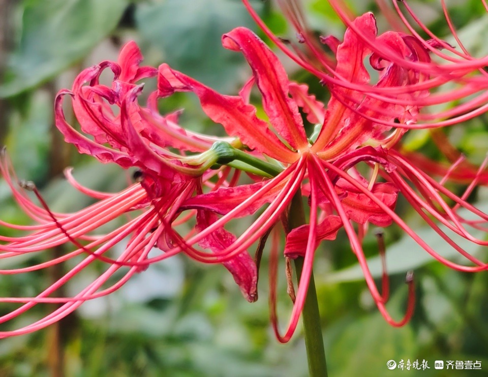 清晨,邻居种植的龙爪花开出花儿,奇怪的是花开不见叶。这种花是茎秆从地面突然冒出,在顶端绽放花朵,所以也称为“平地一声雷”。 (高军 摄)